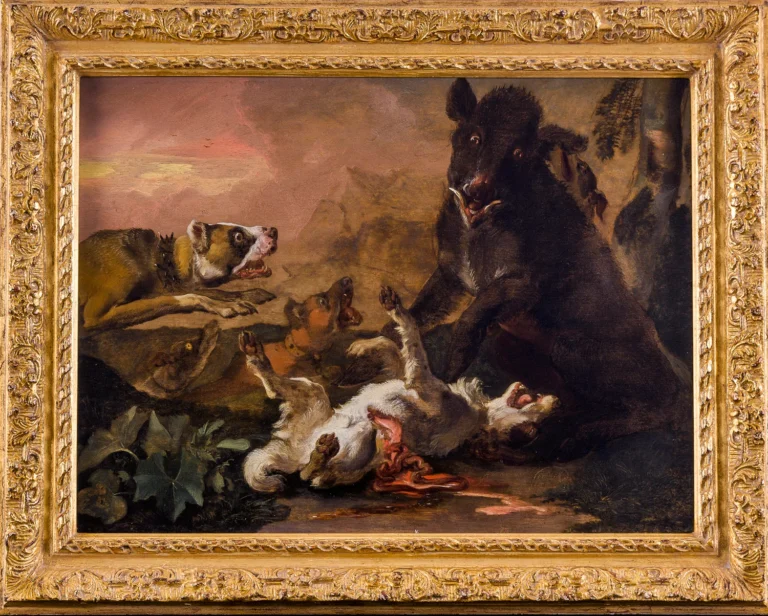 The present work however was painting while Hondius was still living in Rotterdam. Good examples of his works can be found in some of the greatest country houses and in the leading museums of the world, including the Rijksmuseum in Amsterdam, the Boijmans Van Beuningen Museum in Rotterdam, the Hermitage in St Petersburg, the Pushkin Museum in Moscow, the Staatliches Museum in Schwerin and the Museum Narodowe in Warsaw. Due to Hondius’s long residence in England, he is particularly well represented in museums there, including the V&A in London and the Norfolk, Wolverhampton, Kelvingrove and Fitzwilliam museums, many of these works having entered the museums directly from aristocratic collections.