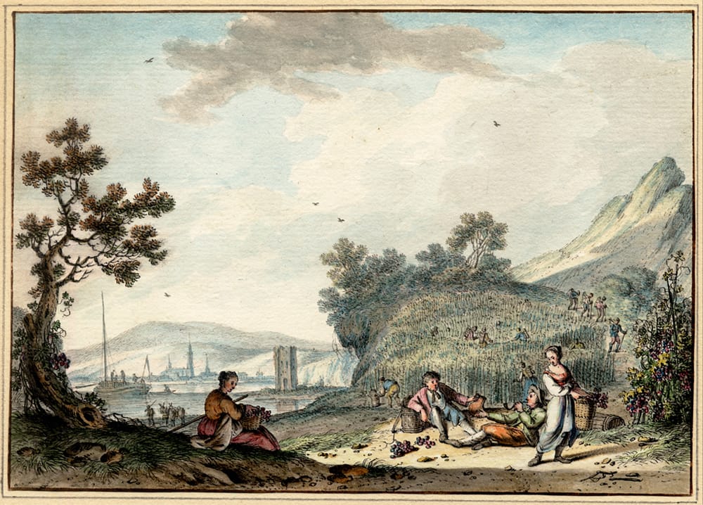Highly finished coloured drawings such as the charming scenes of this rare series, almost like miniature paintings, were extremely fashionable during the eighteenth century. They were favoured by collectors of ‘papierconst’ (paper art), who kept them between the blank sheets of special collecting albums, away from the damaging influence of exposure to light. Because of this, they are often beautifully preserved, with their colours as fresh as the day they were painted, as is also the case with these twelve watercolours, which are superbly preserved.