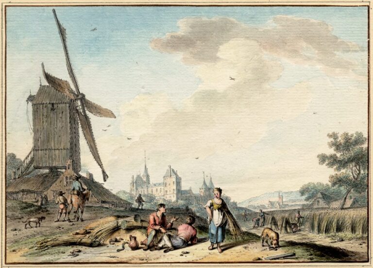 As has been observed by Robert-Jan te Rijdt, Meijer had an instinct for what art lovers wished to collect. He often produced sets of watercolours or gouaches, of the Four Times of Day, the Four Seasons, pendants such as Summer and Winter, or Night and Day. The most elaborate of these series is doubtless the Twelve Months of the Year. The Months had a long tradition in the visual arts. Medieval book illuminators had already depicted them, but the earliest surviving independent set is by Hans Bol (1534–1593), made in 1580-81 as models for engravings, and now in the Boijmans Van Beuningen Museum, Rotterdam.4 The subject was especially popular during the 18th century, but due to the nature of these sets they were frequently split up and sold individually. Complete sets of the Months are known however by Simon Fokke (1765), Jacobus Buys (1771-73), H.P. Schouten (1789) and Jacob Cats (1791), while at least nine drawings from a series by Cornelis Troost of 1741 are known. Artists concentrated on different aspects of life: whereas Troost had a theatrical approach, Meijer focussed on rural and agricultural activities appropriate to each particular month.