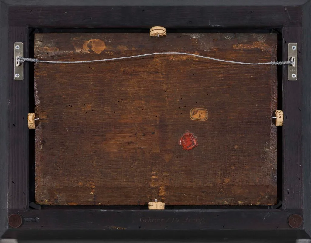 Traces of signature on dorso, which possibly once read ‘J. Porcellis f’, scrapped away; handwritten annotation on dorso, lower centre ‘Backusen’; wax seal ‘CC’; handwritten label ‘EH / 5’
