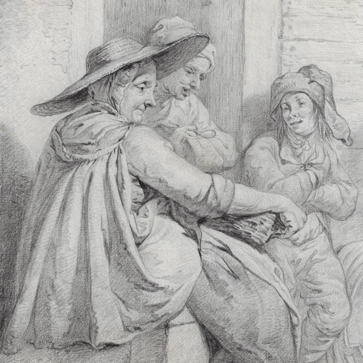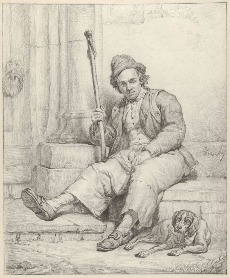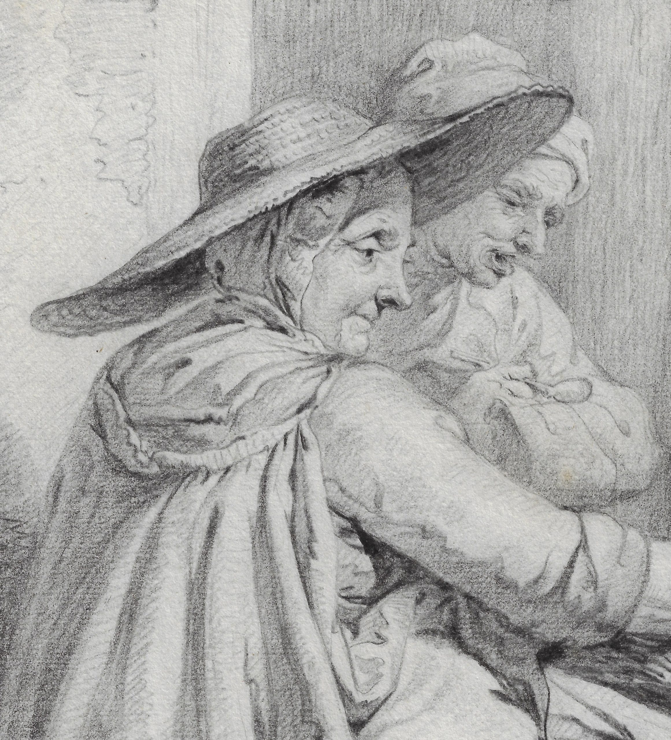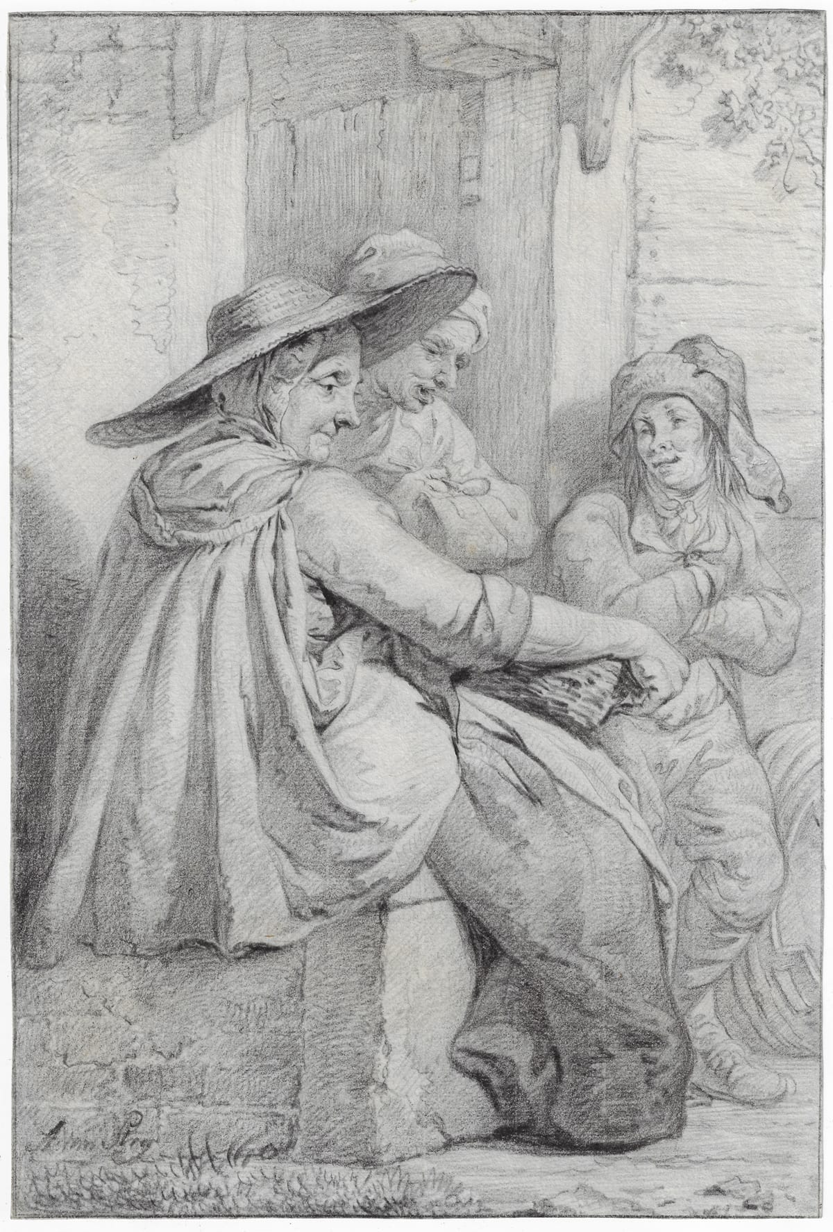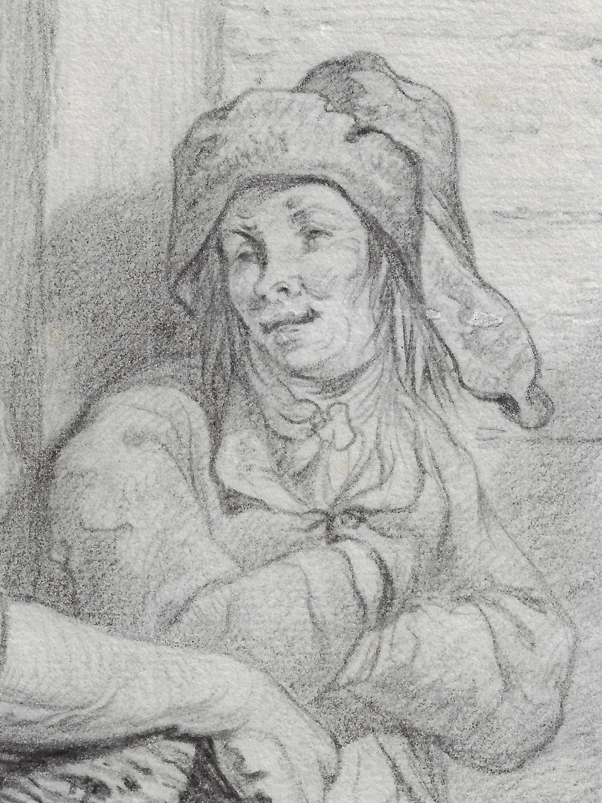 Among Van Strij’s most sensitive and accomplished sheets are those executed exclusively in black chalk, like the present work. Our drawing can for instance be compared to the Seated Man with Dog in the Rijksprentenkabinet, which is dated by Te Rijdt circa 1795-1800,4 and which serves as the frontispiece to the chapter on Van Strij’s drawings in the catalogue accompanying the exhibition held in the Dordrechts Museum and the Rijksmuseum Twenthe in 2000. Our sheet is likely to date from the same period, just before the turn of the century. The handling of the chalk, the various directions of hatching and the soft sfumato effects that the artist was able to achieve are highly comparable. It is known from autograph inscriptions that Van Strij frequently drew from models in the drawing academy Pictura, and it is possible that the present large and striking drawing was also made there.