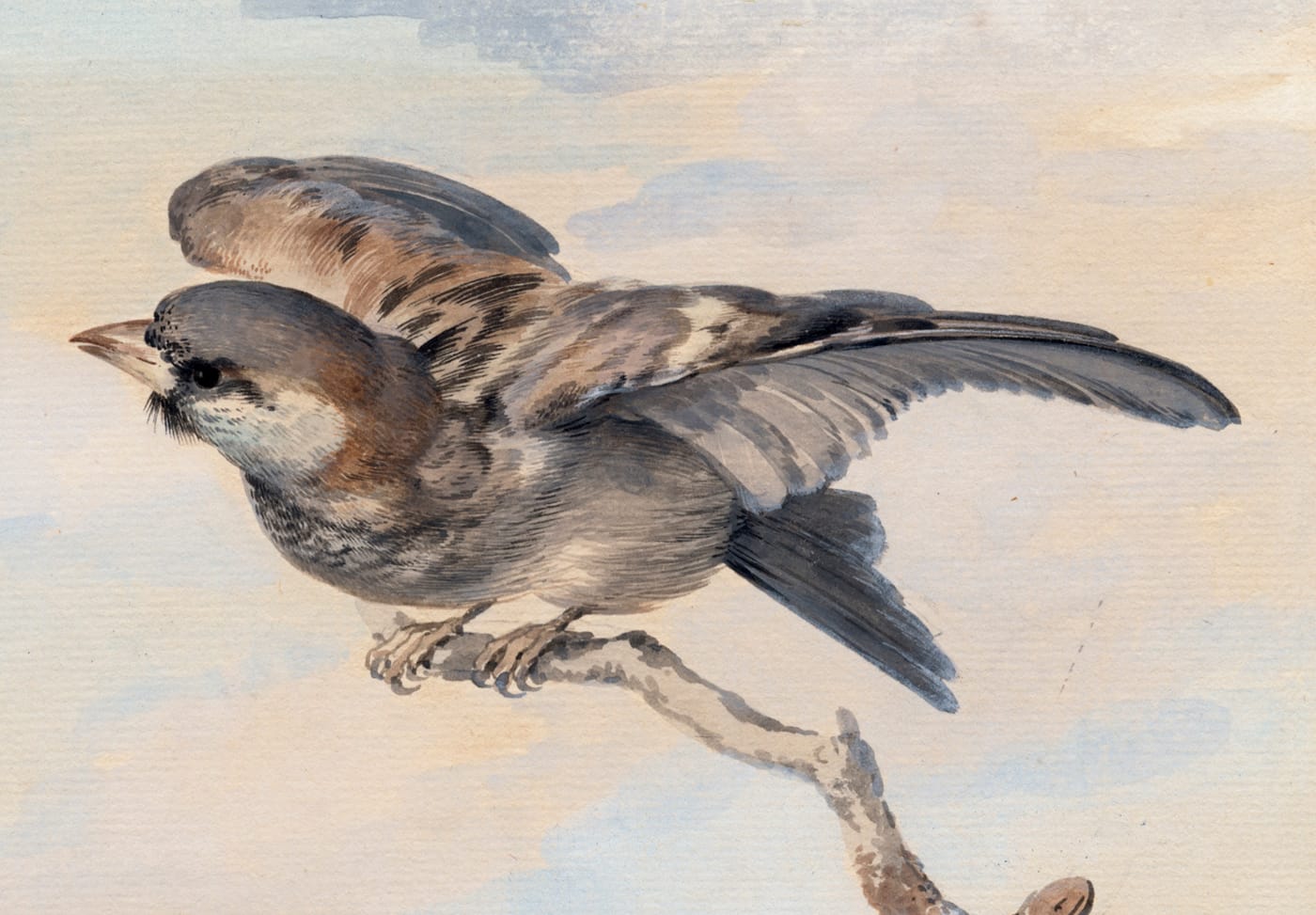 Aert Schouman was highly productive and worked in a wide variety of media, including painting and drawing, printmaking and glass engraving.2 He was also active as an art dealer, like many of his fellow artists at the time. He trained in Dordrecht under the genre and portrait painter Adriaen van der Burgh (1693–1733), before teaching drawing in his native town, and subsequently in Middelburg and The Hague. In addition to portrait commissions, he painted decorative works such as chimneypieces and wall-hangings. He also produced a large number of watercolour drawings, including landscapes and topographical views. However it were his studies of plants and animals for which he was most celebrated. His lively watercolours of birds make him one of the greatest animaliers of the eighteenth century.