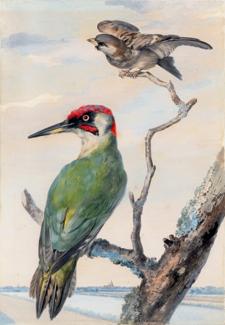 – Probably Jacobus Lauwers; his sale, Amsterdam (Van der Schley … Pruissenaar), 13 December 1802, Album G, no. 11 ‘Een groene Specht en een Winterkoninkje, op de tak van een Boom, in een Landschap, zeer kunstig, door A. Schouwman.’ (Dfl. 7.10 to ‘Bernard’)1