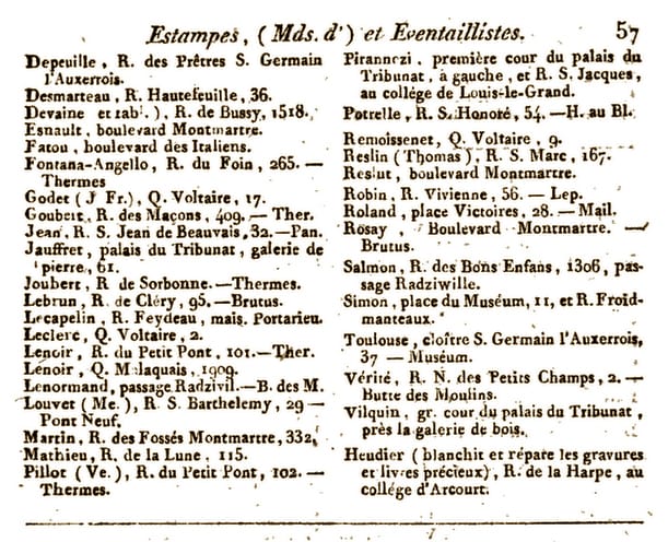 2. Almanach du Commerce de Paris, des Départements de l’Empire français et des Principales Villes de l’Europe. An XIII. (1805), Paris, 1805, p. 57.