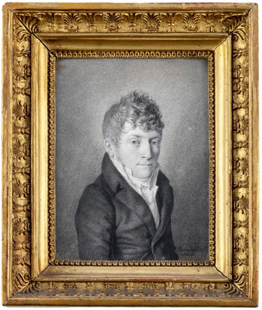Reindel became mostly known as an engraver, and few original works by him survive. This charming portrait drawing of a young man from the Napoleonic era was drawn during Reindel’s formative years in Paris, the world’s leading artistic centre in the early 19th century. It is the most refined work by the artist which is currently known and recalls similar small portraits by Louis Léopold Boilly (1745–1844).