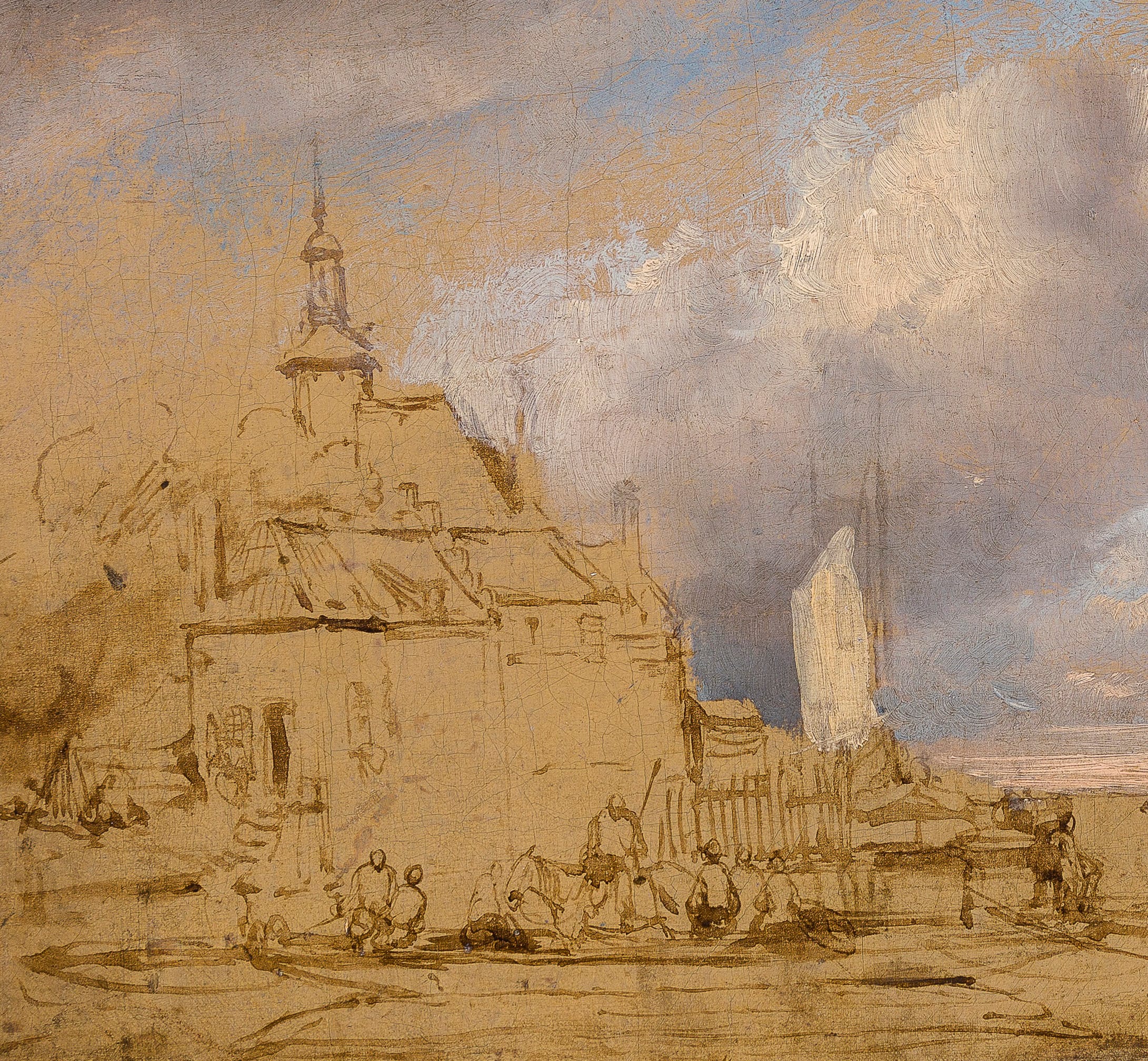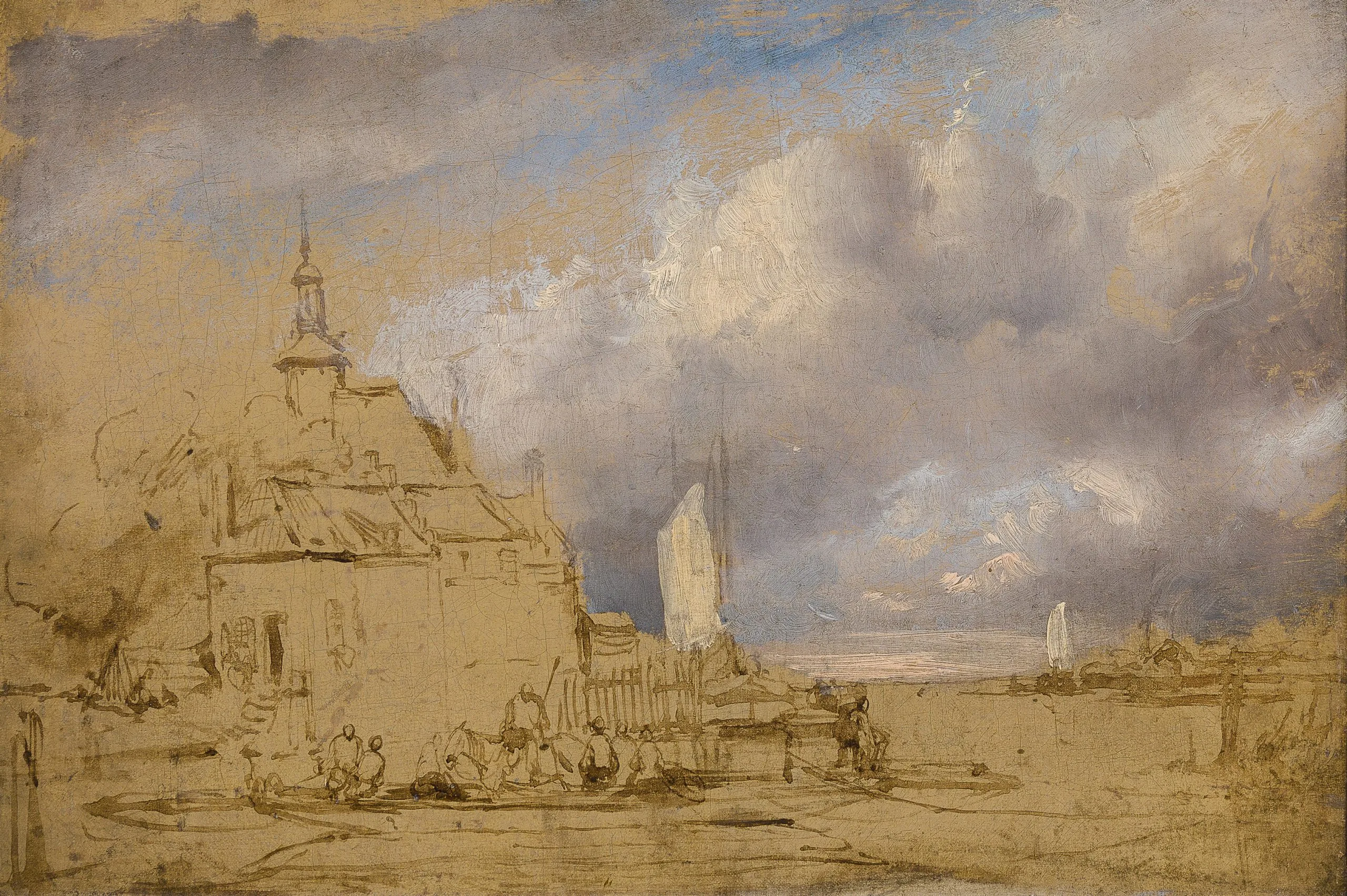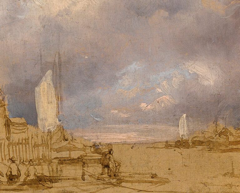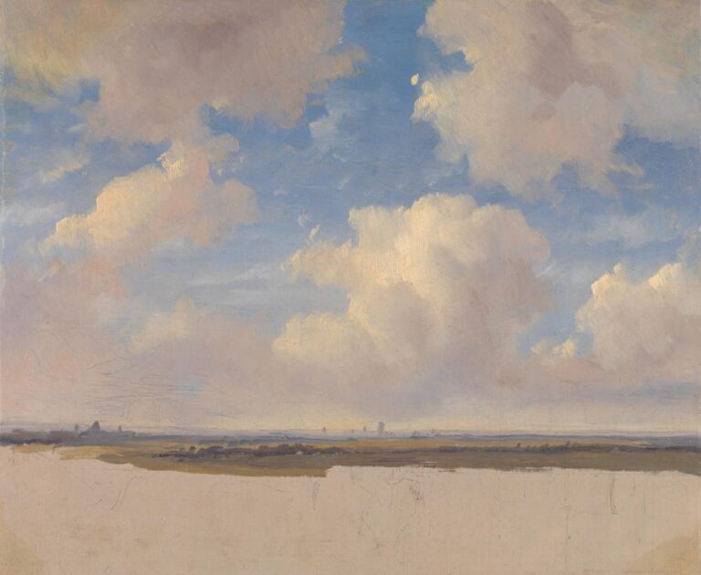 To date, little research has been carried out into plein air sketches by Schelfhout, although it is known he produced such studies: a study of a Landscape with Cumulous Clouds by Schelfhout, in which he paid particular attention to the cloud formations, was part of the Gere Collection and is now in the National Gallery, London (fig.).3 This sketch was frormerly attributed to Gilles-François-Joseph Closson (1798–1842), until its composition was linked to Schelfhout’s Landscape near Haarlem of 1839, now in the Victoria & Albert Museum, London. As pointed out by Xavier Bray in the 2003 National Gallery catalogue, the re-attribution to Schelfhout sheds light on the artist’s working methods.4 The swift and assuredly confident application of paint and the concentration on the sky and cloud formations of our sketch and that in the National Gallery are comparable.