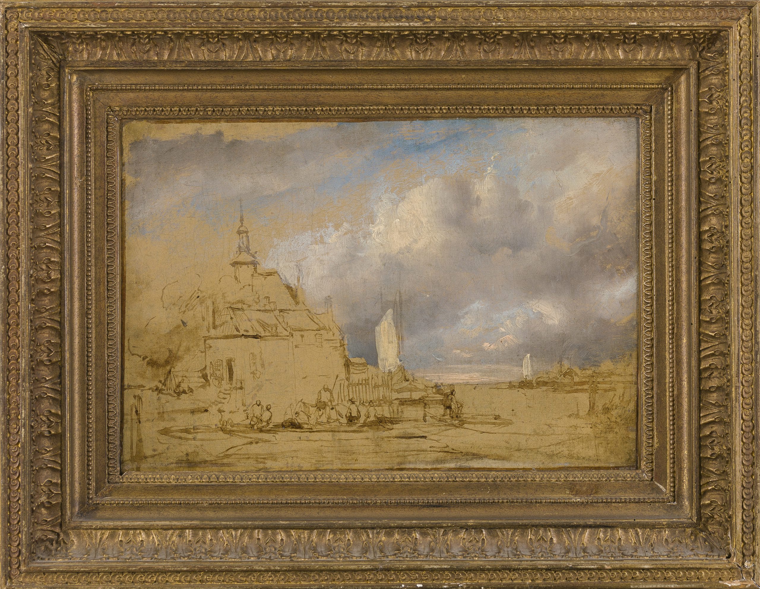 Oil on canvas, 27 x 40 cm (10.6 x 15.7 inch); contained in an early 19th-century giltwood frame