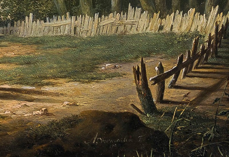 Our landscape by Vermeulen is among the artist’s most refined and sophisticated works. The pedimented brick entrance seems to be a realistic depiction, possibly a gateway to a country house, and therefore the painting could have been especially commissioned by its owner. It can for instance be compared to a Mountainous Landscape in the collection of the Dordrechts Museum (fig.).3 Other paintings by Vermeulen are preserved in the Rijksmuseum, Amsterdam, the Staatliche Kunsthalle in Karlsruhe and the National Gallery, London.