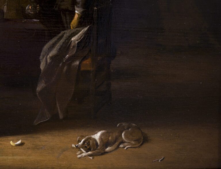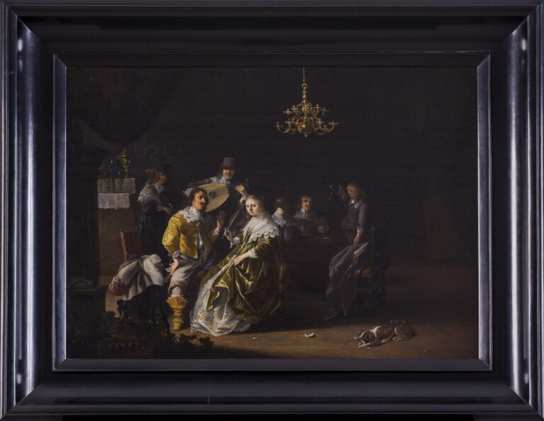The Delft painter Anthonie Palamedesz primarily specialized in portraits and genre works, while his brother Palamedes Palamedesz was a battle scene painter.1 Anthonie was taught the art of painting in the studio of Michiel Jansz van Mierevelt, the leading portrait painter of the time. He joined the Delft Guild of Saint Luke as early as 1621, where one of his fellow painting colleagues was the celebrated Johannes Vermeer, who he would have known intimately. Anthonie married twice and had four children. His pupils were his younger brother Palamedes, his own son Palamedes II and Ludolf de Jongh. Anthonie died in Amsterdam in 1673.
