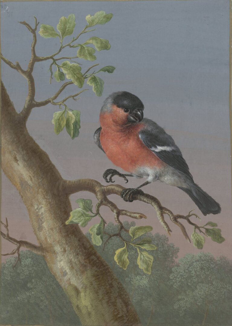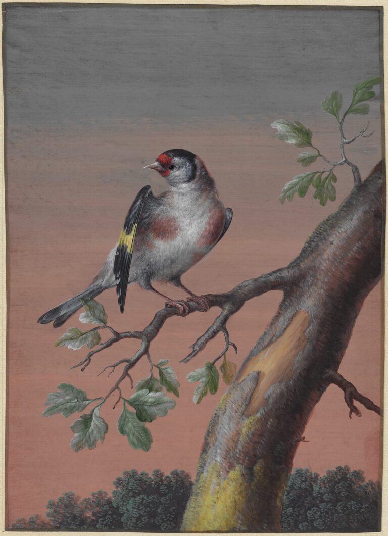 Works by Dietzsch are represented in leading museums and print rooms all over the world, including the Fine Arts Museum of San Francisco and the J. Paul Getty Museum in Malibu. Our gouache is extremely comparable to a set of four portrayals of birds which are among the rich collections of the Rijksmuseum in Amsterdam, particularly close to the Bullfinch from this set (fig.).3 The handling of the textures of the feathers, the landscape background, the tree and the leaves is extremely comparable to our sheet, which is also virtually identical in size.