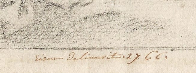 Signed and dated ‘Eisen delineavit. 1766.’ (pen and brown ink, along the lower edge)