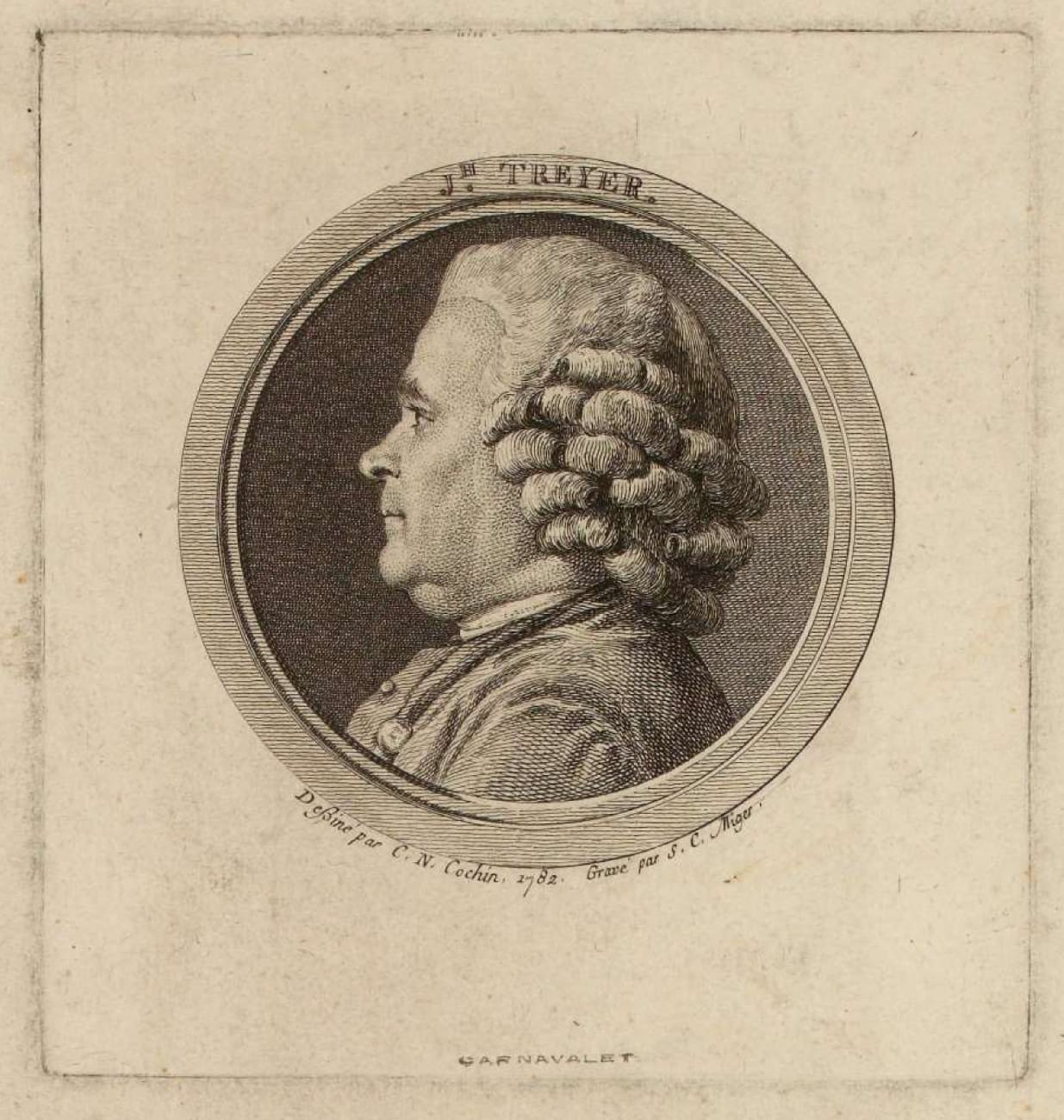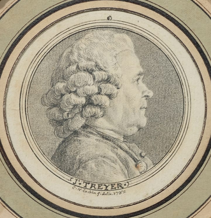 As an independent draftsman, Cochin is mostly known for his delicate and precise portrait drawings, frequently en profil, as in the present case. This well observed portrait, drawn in 1782, depicts the harpsichord maker Joseph Treyer (d.1788).2 Born in Switzerland, Treyer came to Paris to be apprenticed to his uncle, the harpsichord maker Jean Keiser, known as L’Empereur. Treyer died a widower without issue in 1788, and the inventory of the worldly possessions in his house in the Rue des Rats (now Rue d’Arras) lists many harpsichords and other instruments, both finished and unfinished.3
