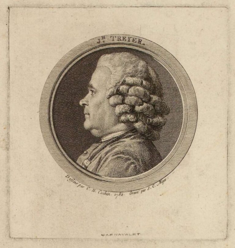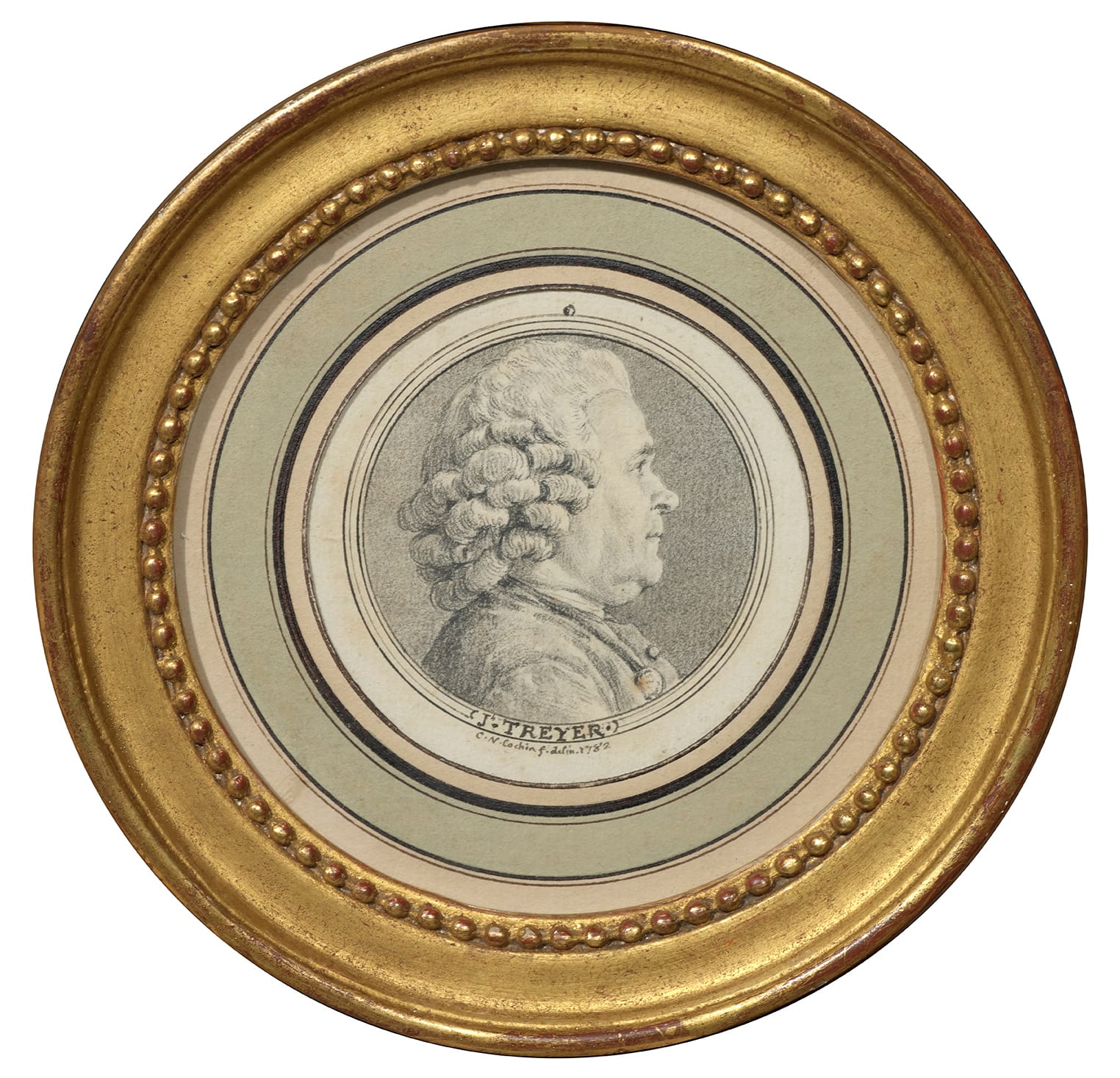 This beautifully preserved drawing is a wonderful example of Cochin’s draftsmanship, but also rare in depicting a craftsman, rather than a member of the elite – and even more interesting that the drawing was engraved by Simon-Charles Miger (1736–1828) in the same year, 1782, indicating that Treyer was something of a celebrity. Our drawing can for instance be compared to Cochin’s Portrait of an Unknown Man in the Metropolitan Museum, New York (fig.).4