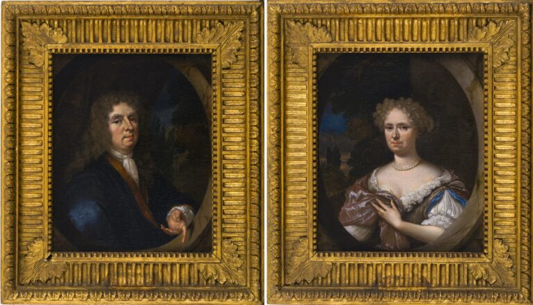 The present portraits are likely to date from the period around 1680-1690, when Haringh was at his most successful. Although the identity of the sitters is lost, they must have been part of The Hague’s elite. A group of seven portraits of Willem Fabricius, his wife Barbara Schas and some of their children, all painted by Haringh around 1683, is preserved in the Frans Hals Museum in Haarlem.3 The present pair of portraits, which are very well preserved, presented in charming late eighteenth-century Neoclassical frames, can also be compared to the portraits of Johan van Bochhoven and his wife Sara Pottey, in the collection of the Rijksmuseum in Amsterdam (fig.).4