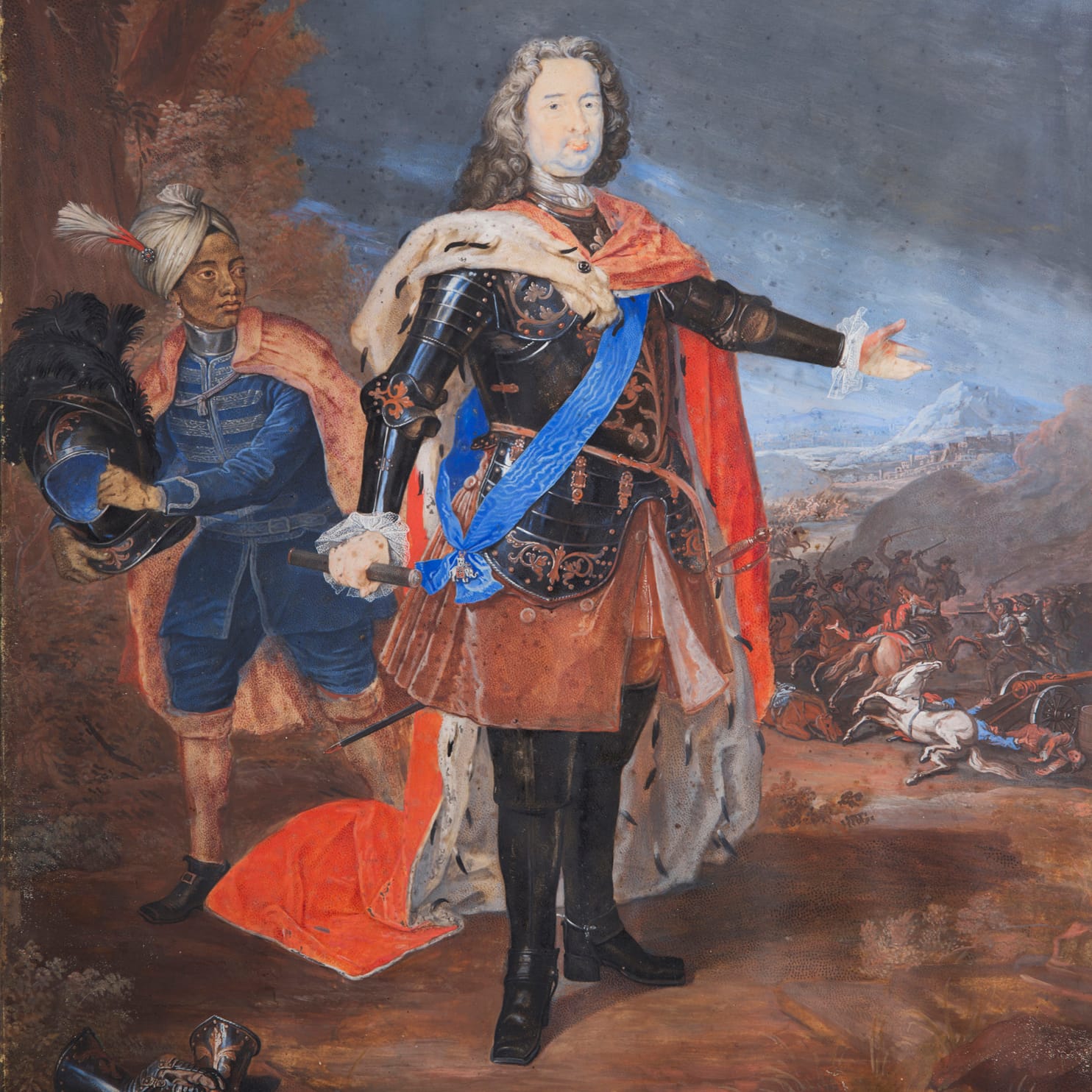 Portrait of Landgrave Karl von Hessen-Kassel (1654–1730) on the Battlefield, attended by a black page