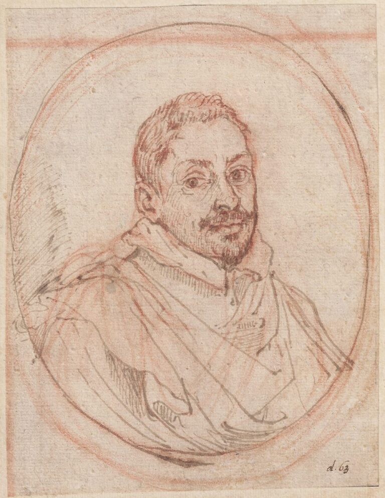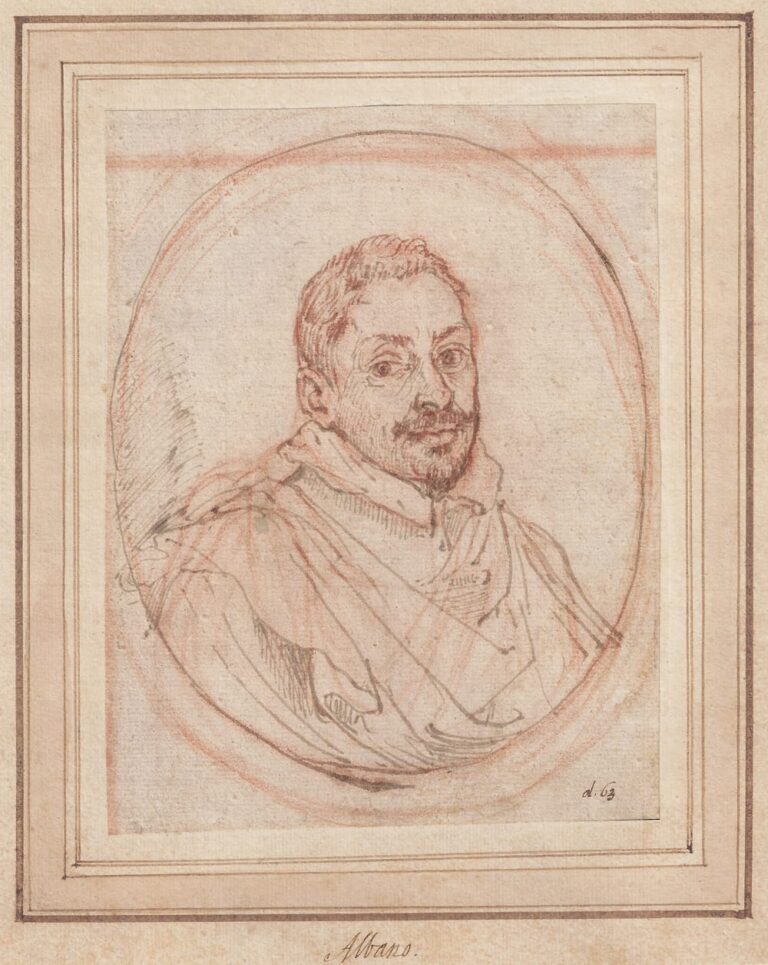 The entry for our drawing in the Lansdowne manuscript of the Resta-Somers collection held at the British Museum reads as follows: Di Fran:co Albano quando seguitiva Annibale / M’era parso d’Ag.o Carracci, poi d’Ant.o Scalvati, ma / riveduto in altro libro il disegno del Ritratto dell’Albano / fatto da lui med.o l’ho ascritto a lui ma non si dovra / imputar ad arrore, se si terra per d’Agostino o d’Annibale. (By Francesco Albano when he followed Annibale. Firstly I believed it to be by Agostino Carracci, then by Antonio Scalvatti, but having found in another book a portrait of Albano made by himself, I have attributed it to him but one would not be mistaken to consider it to be by Agostino or Annibale.).4 Resta’s thoughts on the authorship of our drawing are fascinating, and illustrate how the great collector kept revising and adjusting his attributions.