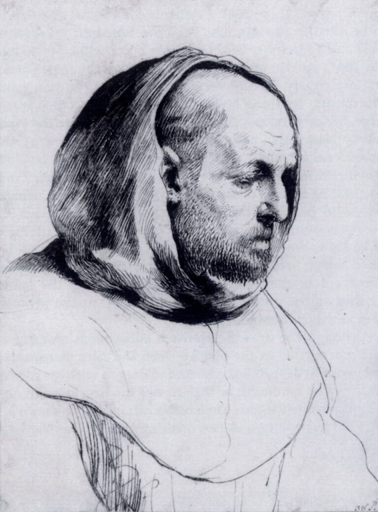 The present powerful drawing was executed around 1640 and forms part of a group of carefully executed detailed head studies, which often served as studies for paintings or were intended to be engraved. A similar study of a Head of a Monk is preserved in a private collection (fig.).1