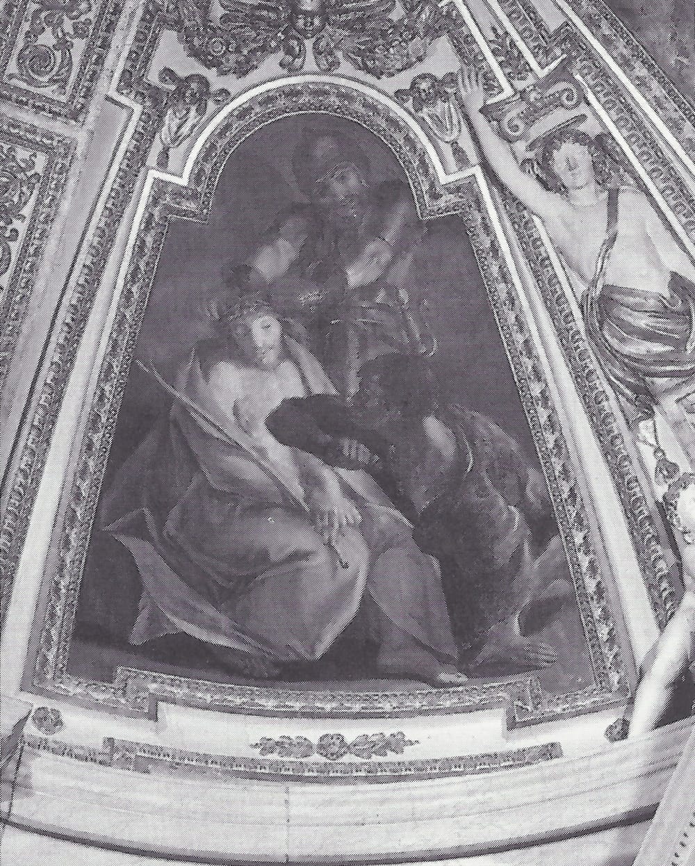 Lanfranco contrasted monumental foreground figures with partly hidden figures emerging from behind a rise. The resulting tension differed from the approach taken by Annibale Carracci, Domenichino, and Pietro da Cortona, whose compositions were organized in layers parallel to the picture plane. Lanfranco’s dome of San Andrea della Valle in Rome heralded the High Baroque by combining the Carracci figure style with Correggio’s illusionistic foreshortening. Domenichino, who lost this commission, is said to have weakened part of the scaffolding, hoping his rival would break his neck. From 1634 to 1646, Lanfranco worked in Naples, asserting himself against hostile local painters to finish the Cappella del Tesoro’s cupola in Naples Cathedral. He returned to Rome in 1646.