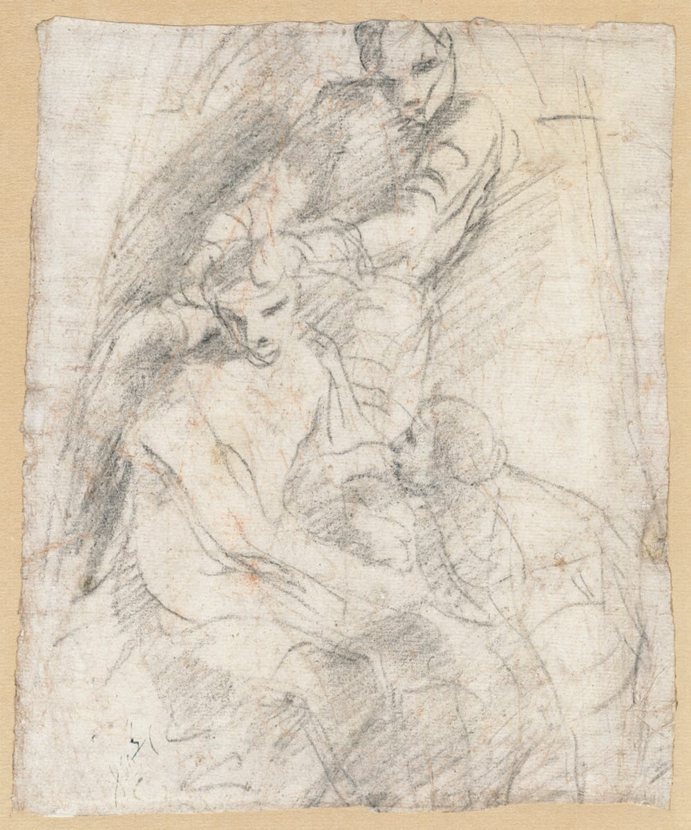 Black chalk, traces of red chalk, 235 x 192 mm (9.3 x 7.6 inch)