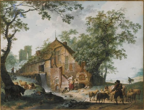 Our charming gouache can be compared to a spectacular and large gouache of a Landscape with Watermill, identically signed by Hendrik de Meijer and dated to the same year, 1787, was sold at Christie’s in 2004.2 The same addition of ‘inv[enit] et fecit’ (‘designed and made’) to the signature implies that the artist was not only proud of his abilities as a painter, but that he also valued his compositional skills.