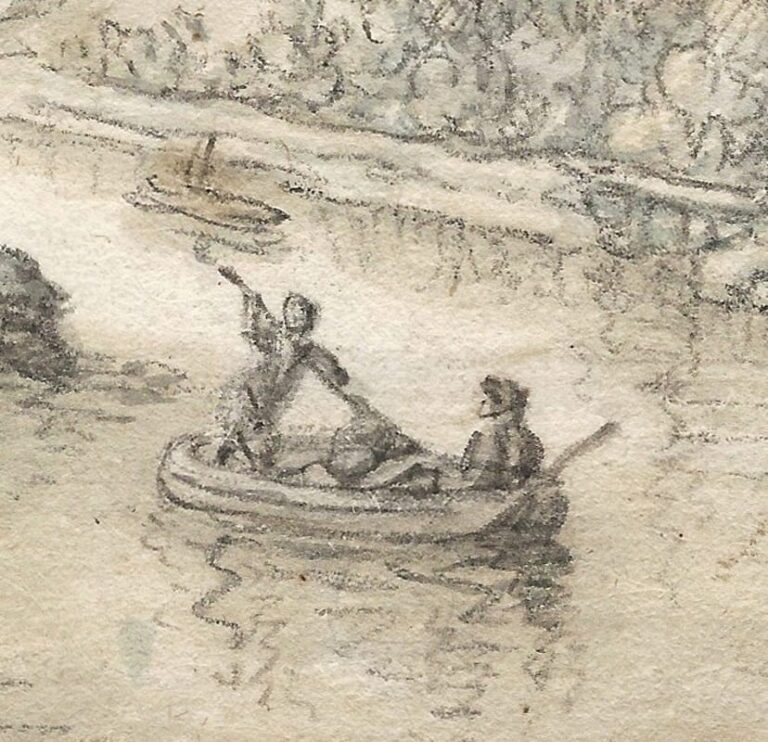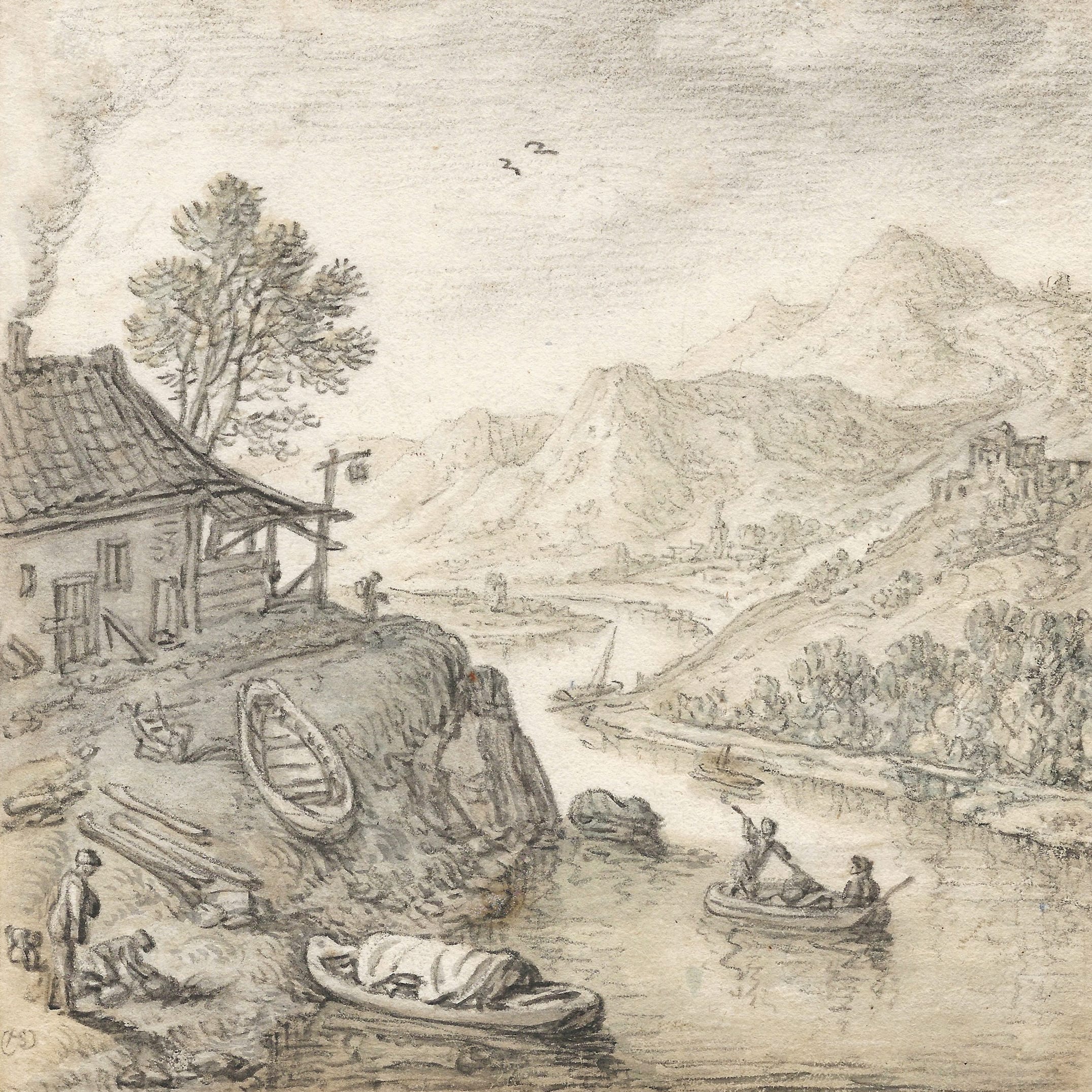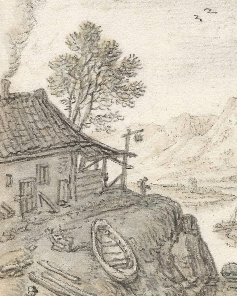 Saftleven’s Rhine landscapes were highly successful and became increasingly picturesque over the years, abandoning topographical accuracy for imagined pretty views based on his travel impressions. Like our sheet, they were often monogrammed, which indicates they were made for collectors from the outset. They were praised by the Dutch poet Joost van den Vondel in an elaborate panegyric in 1660, praising how Saftleven’s views enabled art lovers to make a fantastic paper journey along the Rhine.