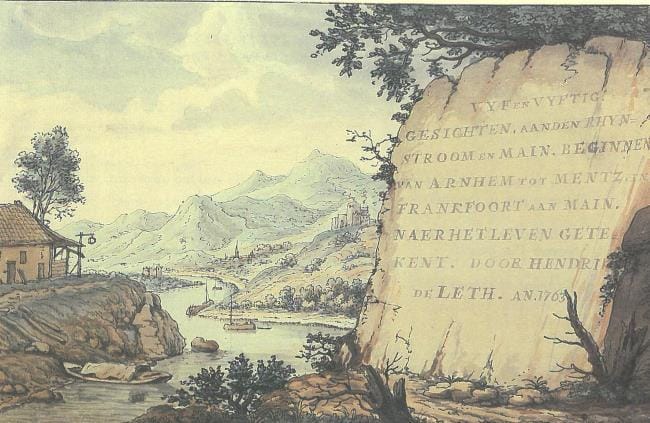 Saftleven used this drawing as a source for a River Landscape which appeared on the art market in 2006 (fig.).8 Our drawing was furthermore used as a model for a drawing by Hendrik de Leth (1703–1766), that served as the frontispiece for a series of fifty-five Rhine views, drawn in 1763 (fig.).9