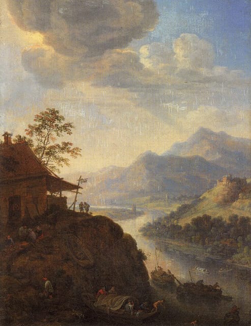 In the early 1650s Saftleven travelled along the Rhine and Moselle rivers, which were to exert a lasting influence on his work. During his travels he drew a series of views of Rhine towns, from Arnhem and Cleves to Bingen, near Mainz. Once returned to his studio, he transformed these travel sketches into finished drawings and paintings. Many drawings of this sort are preserved as part of the Atlas Bleau, assembled by the Amsterdam lawyer Laurens van der Hem, and now in the National Library in Vienna.