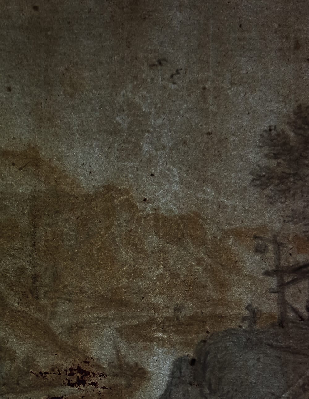 Black chalk, brown-grey wash, heightened with white, partial black ink framing lines, watermark foolscap, 196 x 186 mm (7.7 x 7.3 inch)