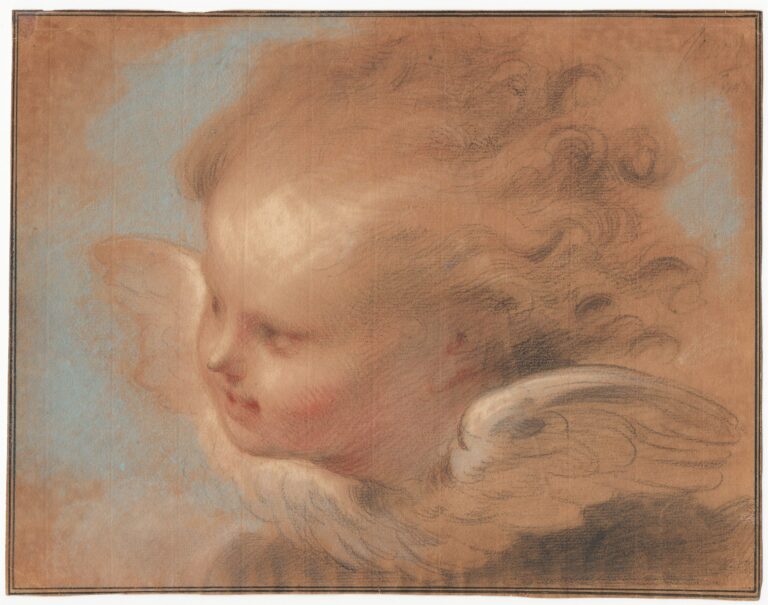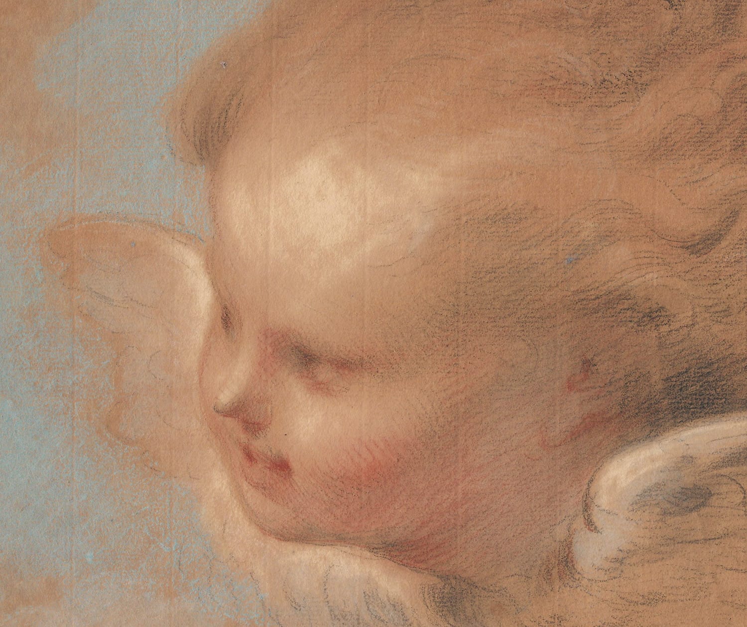 Several related drawings of putti or cherubs are known by De Wit, all in similar technique of coloured chalks, and of similar generous dimensions. The double ink framing lines are also typical for De Wit. Our drawing can for instance be compared to a sheet in the Rijksprentenkabinet of the Rijksmuseum, Amsterdam (fig.).2 Other examples are in the Museum Boijmans Van Beuningen in Rotterdam and the Teyler Museum in Haarlem.3 Although they may have served as preparatory drawings for paintings and altarpieces, they must also have been intended for contemporary collectors, as they are frequently signed and dated by De Wit.