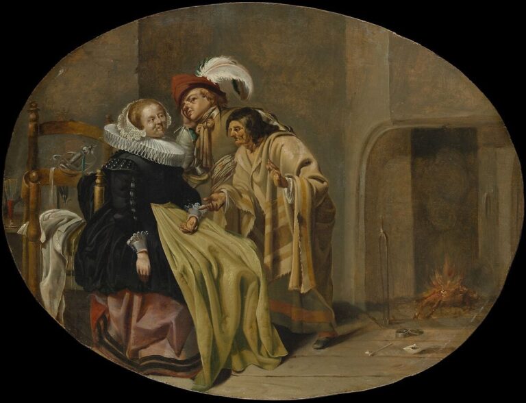 Our painting can be compared to Duck’s painting Couple in an Interior with a Fortune-Teller in the Metropolitan Museum in New York, which dates from 1632-1633, very close in date to our work (fig.).5