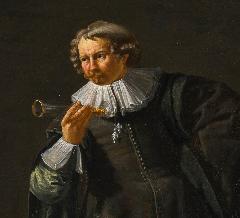 Duck was born in Utrecht; a document of 1660 in which he states that he was about 60 years of age establishes his date of birth as c.1600.1 He initially trained as a goldsmith. His parents placed him as an apprentice in 1611, and eight years later he became a master in the goldsmiths’ guild. He married Rijckgen Croock in 1620. In 1621, he was listed among the pupils of the Utrecht painter Joost Cornelisz Droochsloot and other painters, and in the same year he is recorded as a ‘conterfeyt jongen’ (apprentice portraitist) in the archives of the Utrecht painters’ guild. In 1629, he gave a painting of a musical company to the St Jobsgasthuis in Utrecht, and in 1630-33, he was listed as a master in the city’s Guild of St Luke. He evidently did not abandon his first profession, for he was still being listed as a member of the goldsmiths’ guild in 1642. As some of Duck’s paintings were offered in a lottery sponsored by the Haarlem guild in 1636, it was thought that he lived in Haarlem for a while. However, he is documented in Utrecht in 1636 and 1637, and appears to have been in his native city throughout the 1630s and 1640s. He may have been in The Hague around 1660, for there is a record of a painter there with the same name. He died in Utrecht on or just before 21 January 1667, and was buried on 28 January in the Convent of St Mary Magdalen.