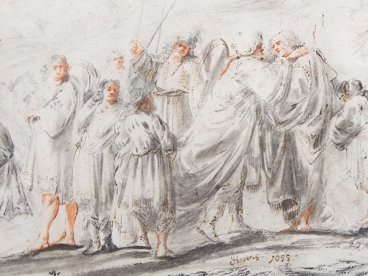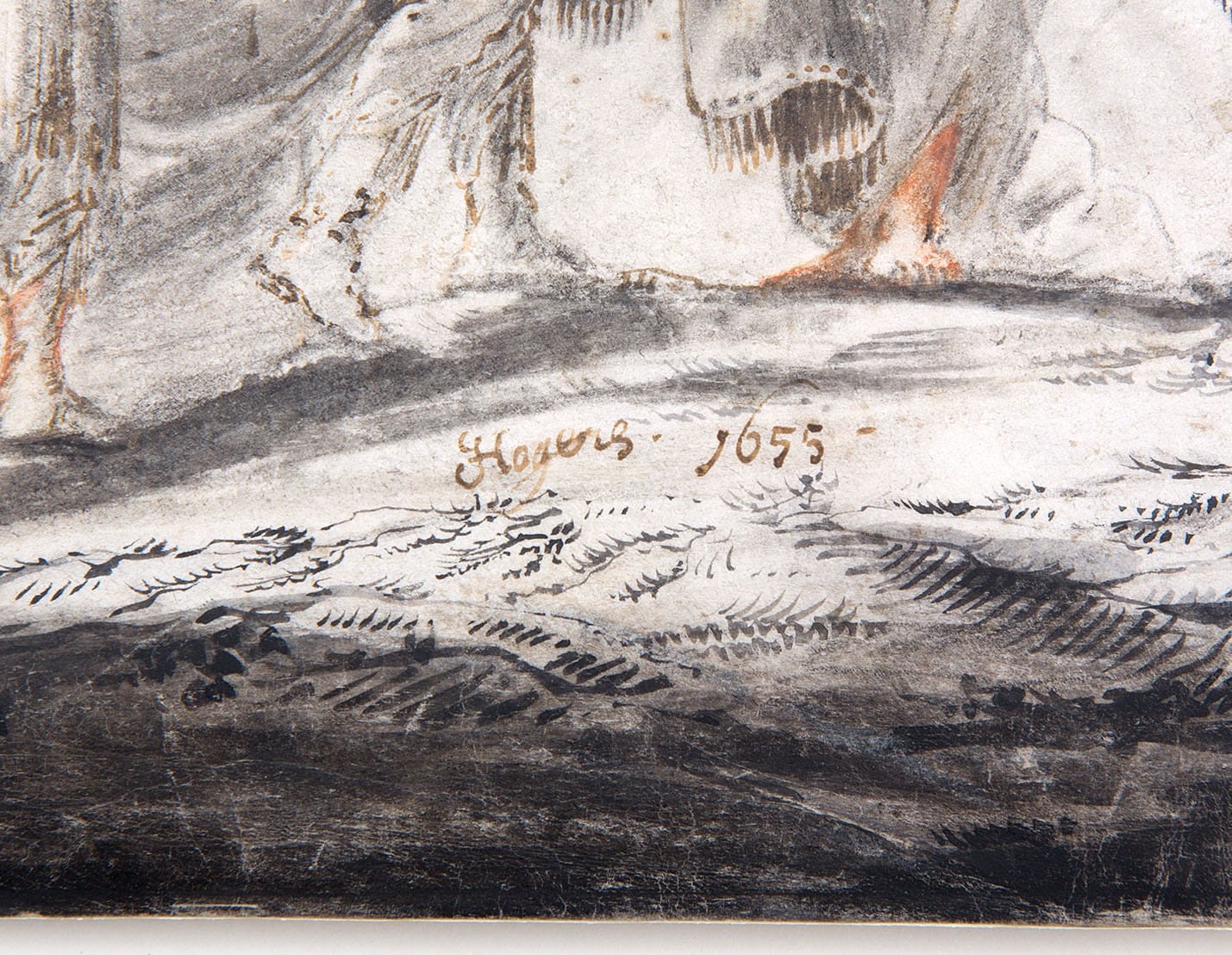 Hogers is an enigmatic artist by whom few works survive. He is not mentioned by early biographers such as Houbraken and Van Gool, and only came to scholarly attention in the late 19th century, when the Rijksmuseum acquired his masterpiece, Jacob and Esau.1 The main account of his life and works remains the article by B.J.A. Renckens published in 1955,2 in which the present drawing was included.