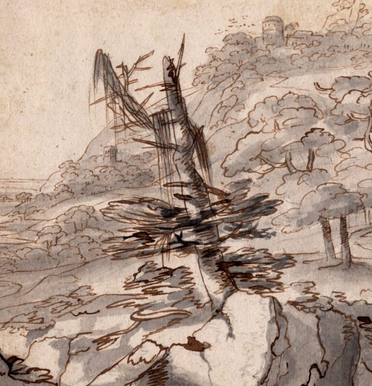 Pen and brown ink and grey wash over black chalk, watermark foolscap, 186 x 304 mm (7.3 x 12 inch)