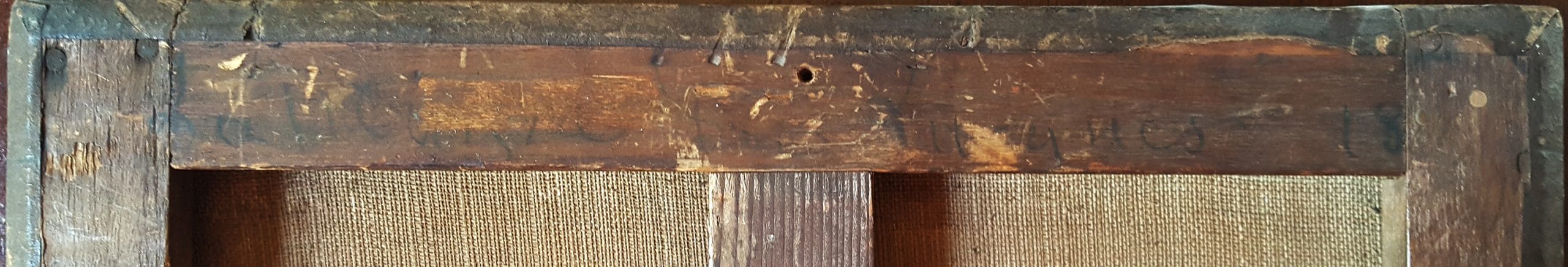 Indistinctly inscribed in black chalk on the upper member of the stretcher