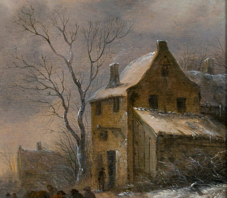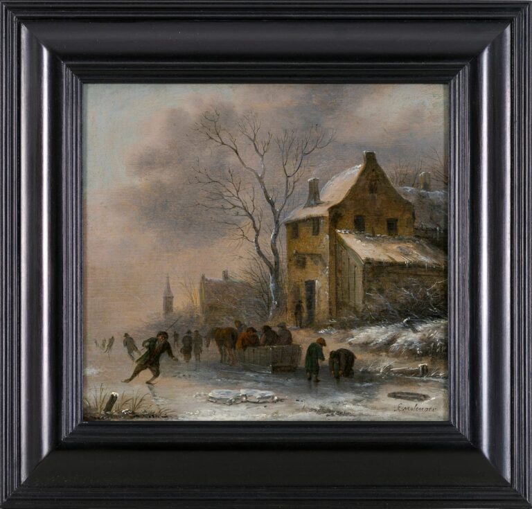 Our beautifully preserved work of particularly intimate size is a highlight in Molenaer’s extensive oeuvre. It can for instance be compared to a Winter Landscape in the Kröller Müller Museum in Otterlo (fig.).2 Winter landscapes are among Molenaer’s most beloved works. Winters were harsh during the seventeenth century, which is known as the Small Ice Age, and the genre of the winter landscape flourished.