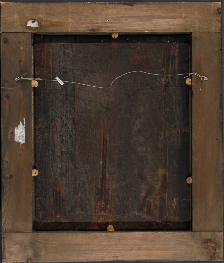 Oil on panel, 64 x 51.2 cm (87 x 74.5 cm); contained in a modern ebonised ripple frame of 17th-century model
