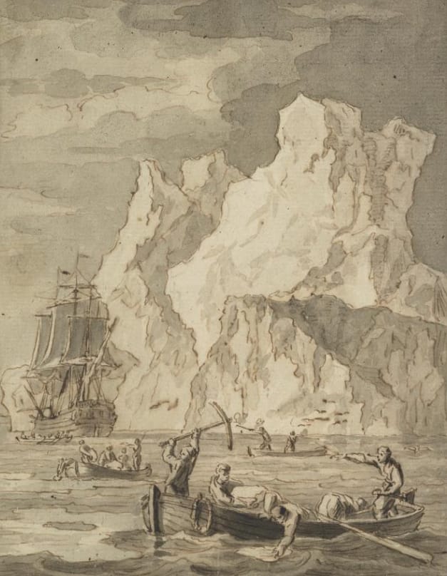 3. Pen and brown ink, grey wash, 168 x 131 mm, inv. no. D 1087; K. Andrews, Catalogue of Netherlandish Drawings in the National Galleris of Scotland, Edinburgh 1985, p. 12, fig. 86. Boats and a Ship near an Iceberg | National Galleries of Scotland.