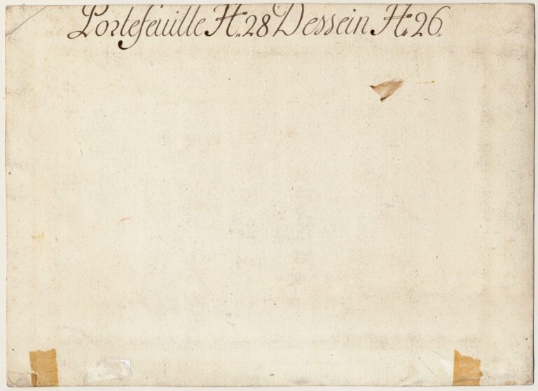 ~ Achille Ryhiner-Delon (1731–1788), Basle (Lugt 3004b); on his characteristic decorative mount, with inscription ‘Portefeuille No 28 Dessein No 26’ (verso)
