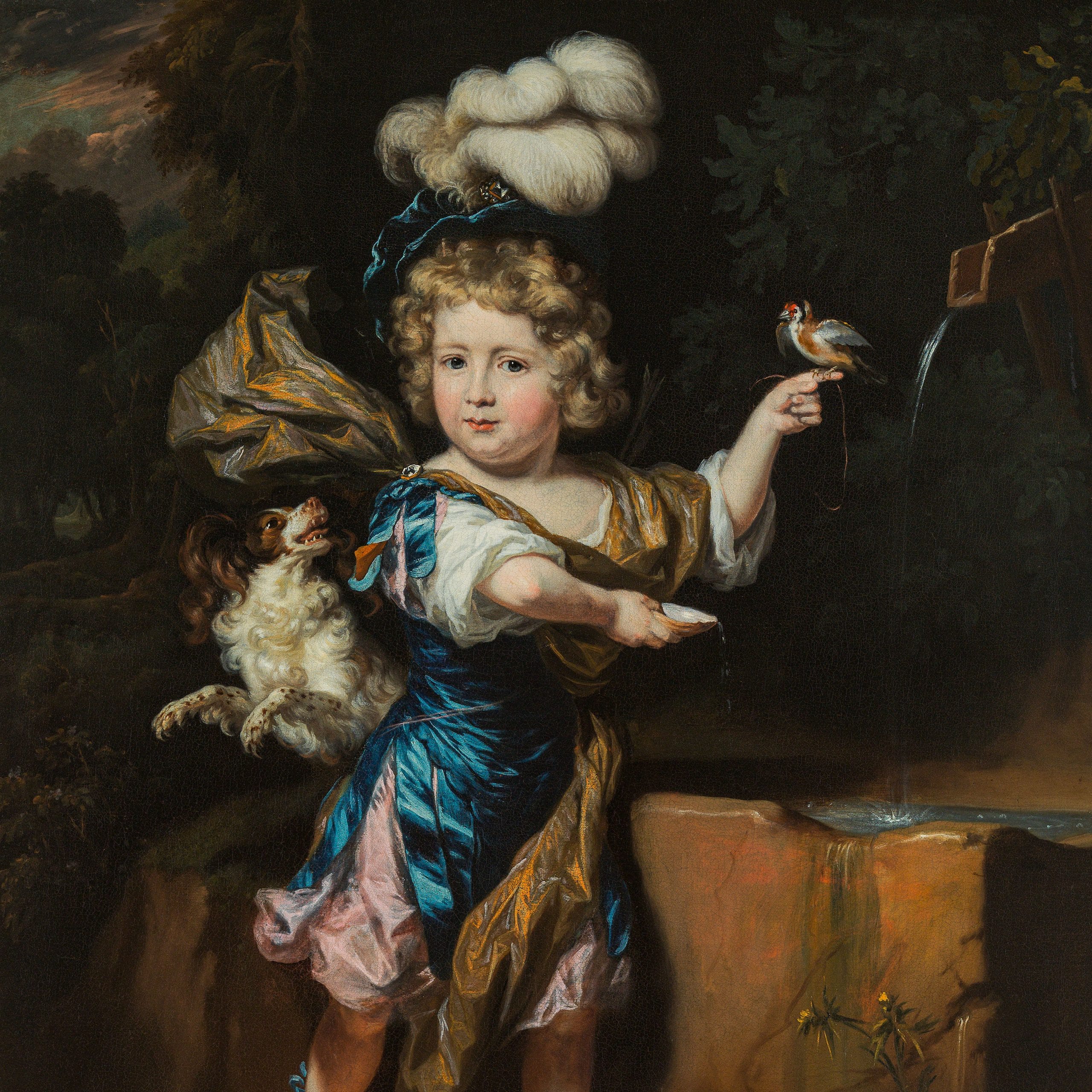 The present portrait of a young boy, whose identity has sadly been lost over time, was painted circa 1675-1680, when Maes was settled in Amsterdam. The boy is dressed in a fantasy costume, loosely based on examples from Roman Antiquity. The bow and arrow at his feet and the goldfinch on a string on his finger identify him as a representation as Cupid, son of Venus. The fountain and shell refer to the popular play Granida and Daifilo by Pieter Cornelisz Hooft. It was customary for sitters during the Golden Age to be depicted as characters from Classical mythology, the Bible or even as shepherds and shepherdesses. Maes also depicted young boys as Ganymedes and the hunter Adonis. A comparable portrait by Maes of four children in mythological guises is preserved in the Dordrechts Museum, Dordrecht (fig.).3 Another comparable portrait of a boy with a bullfinch is in the Minneapolis Institute of Art (fig.).4