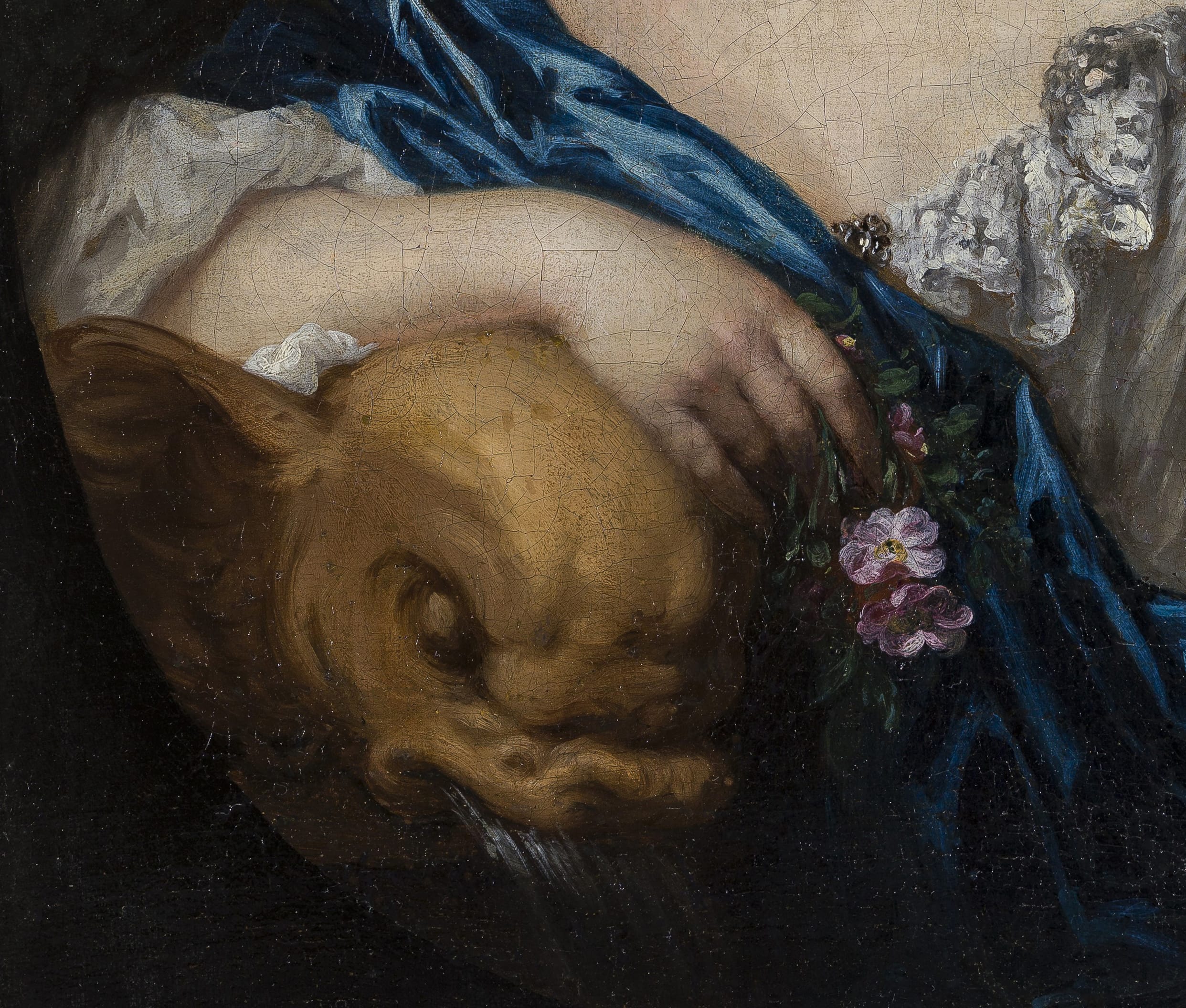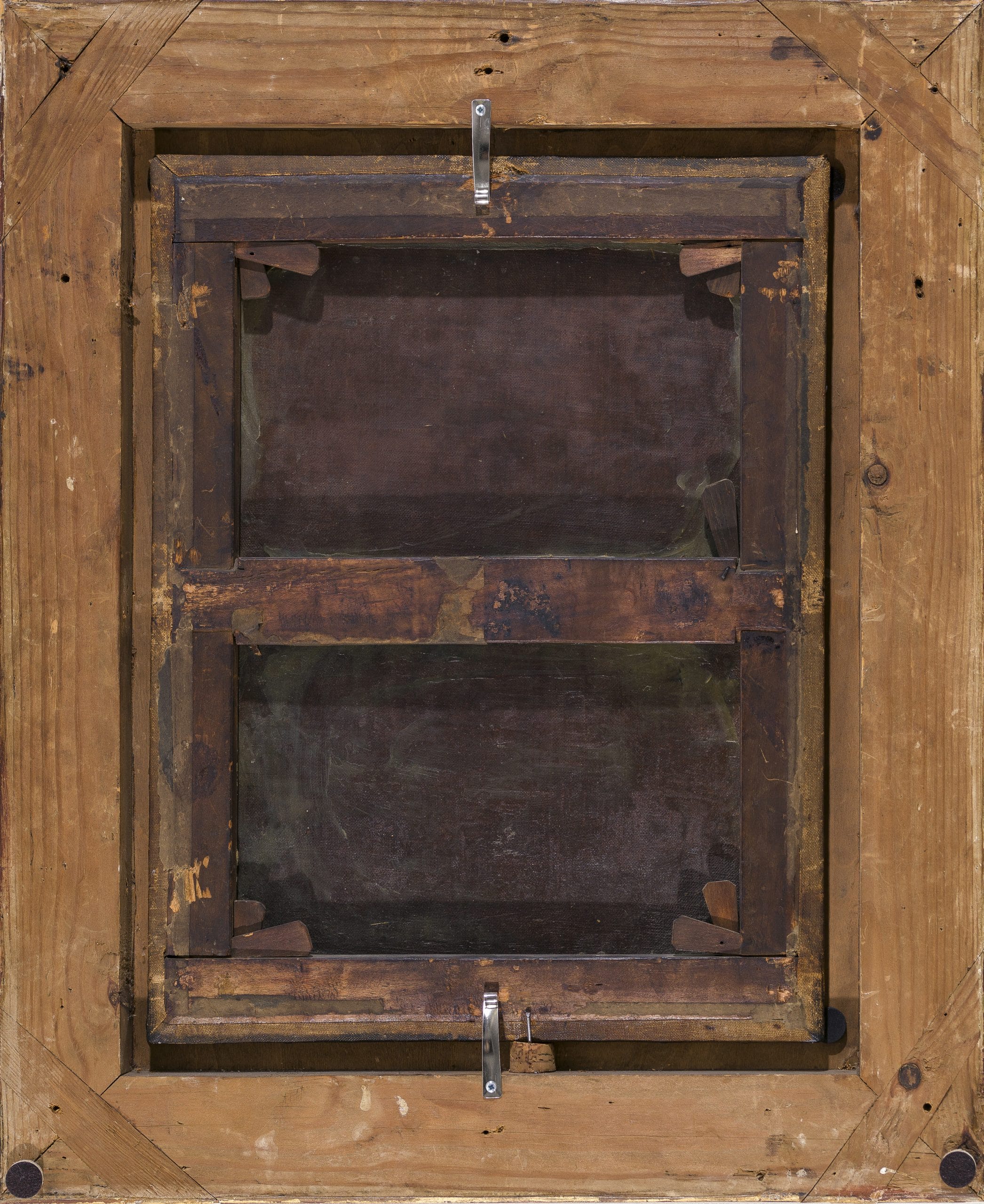 Oil on canvas, 44 x 33.5 cm (17.3 x 13.2 inch); contained in an elaborate giltwood frame of Rococo model, probably France circa 1900