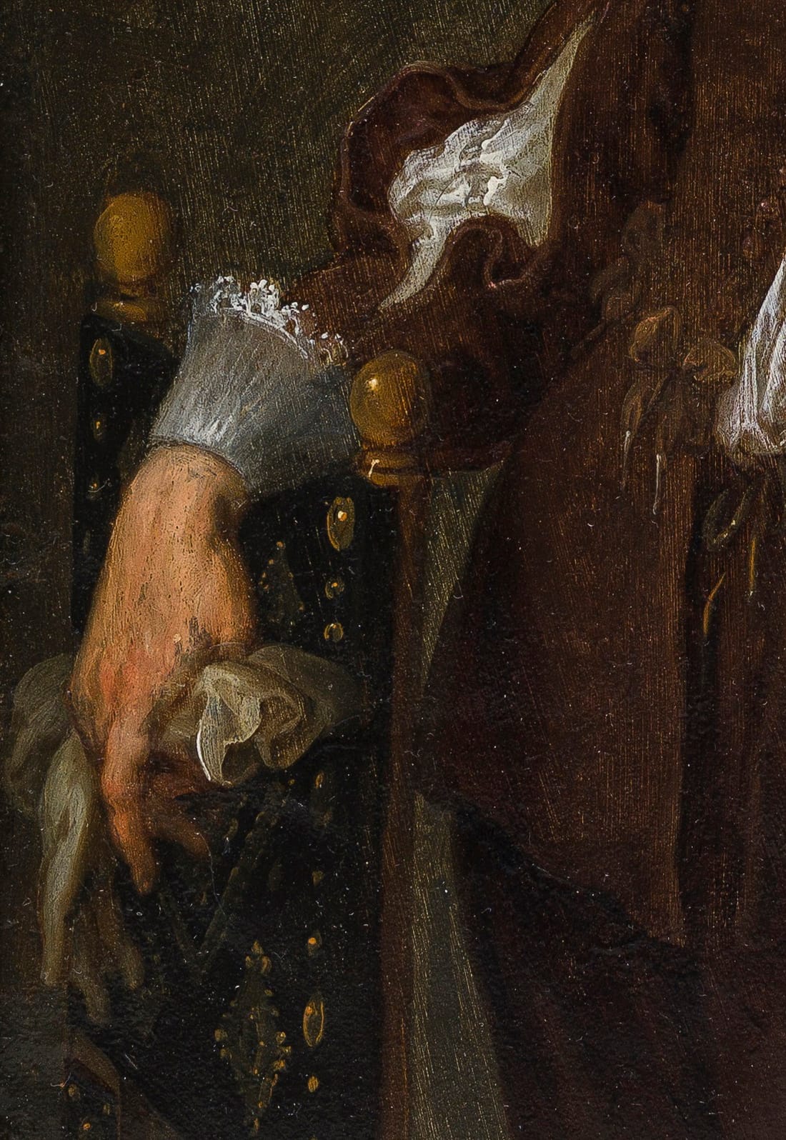Few portrait painters of this period painted such small-scale works on copper supports. As a possible attribution, one might think of Cornelis Saftleven (Gorinchem c.1607 – 1681 Rotterdam).1 Saftleven worked in Antwerp from 1632 to 1634, where he was taught by Adriaen Brouwer and David Teniers II. He then worked in Utrecht and in 1637 moved to Rotterdam. An extraordinary early self-portrait by Saftleven of c.1628, holding a drawing of a monkey, is preserved in the Fondation Custodia, Paris (fig.).2 Furthermore, two small portraits on copper of Godard van Reede, Heer van Nederhorst, and his wife Catharina van Utenhove, both dated 1634, are preserved in the collections of Slot Zuylen (fig.).3