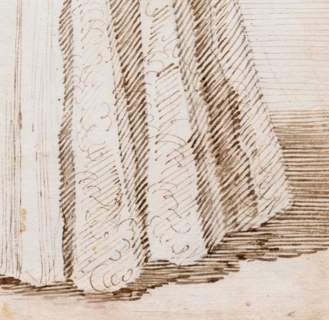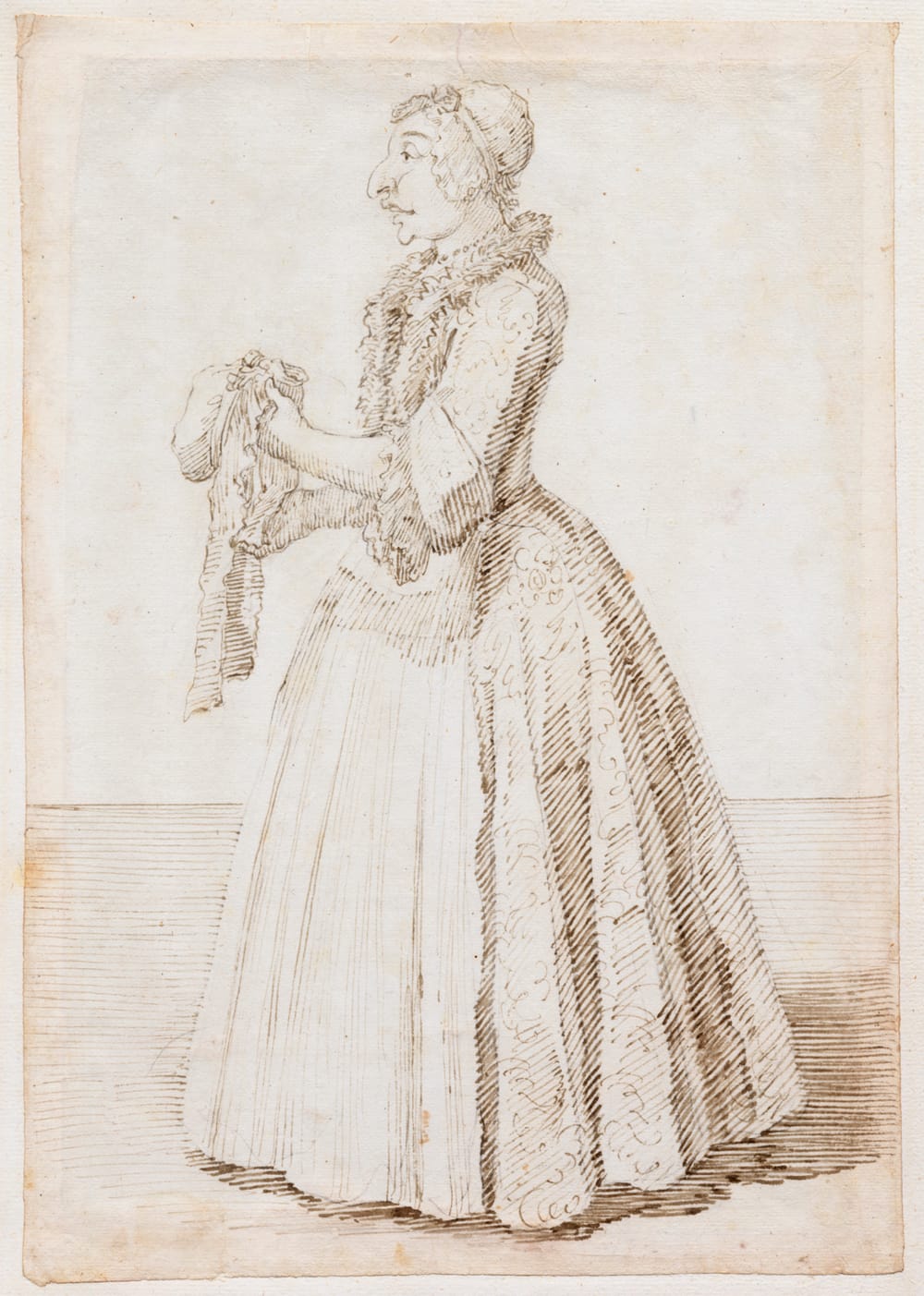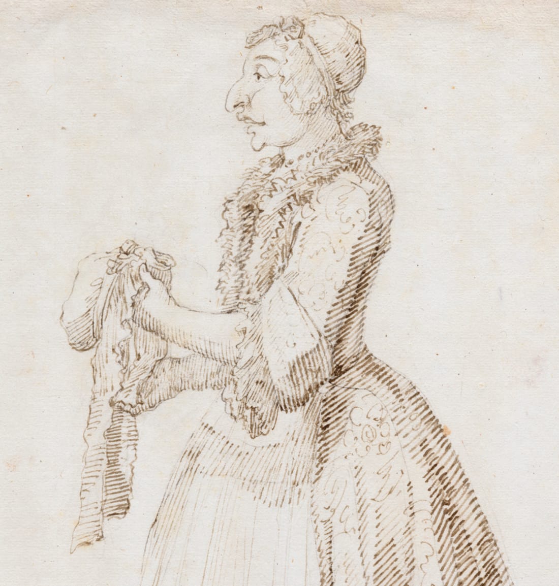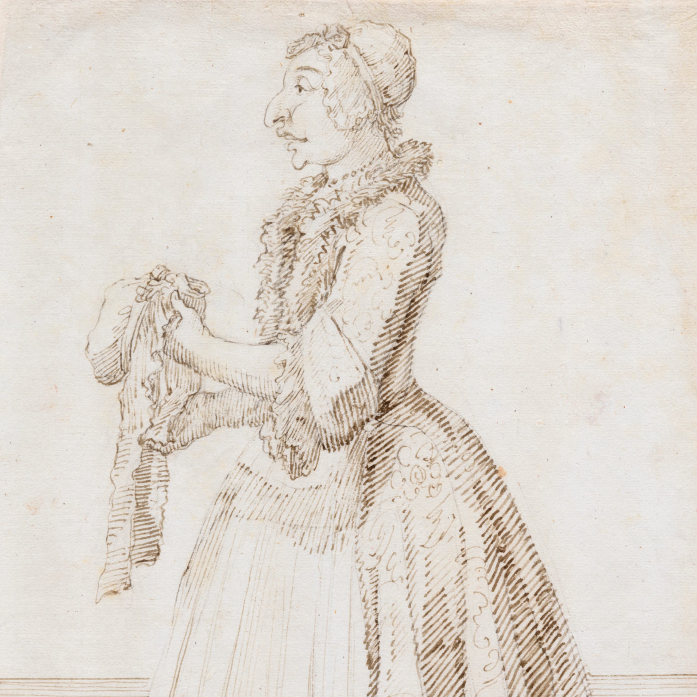 The present drawing is part of a group of 152 caricature drawings by Ghezzi of members of the household of Cardinal Melchior de Polignac (1654-1747). The caricatures were originally bound in two volumes and were in the possession of Lord Braybrooke of Audley End House by 1798, until sold by his descendants at Sotheby’s in 1979. Cardinal de Polignac was the French Ambassador to Rome between 1724 and 1730, during which time he became friends with Ghezzi.1