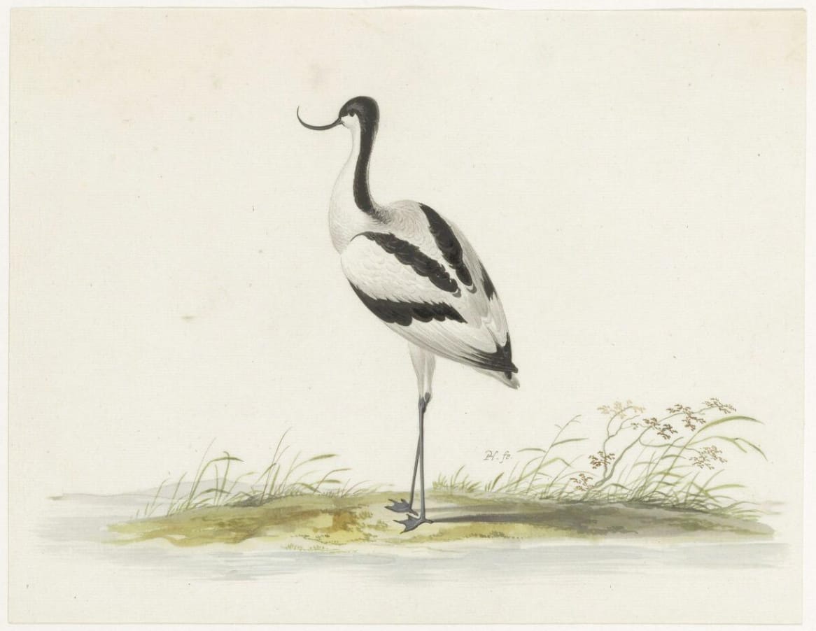 An album with a large group of approximately 150 drawings of birds, reptiles and other animals is preserved in the Noord-Hollands Archief in Haarlem, bequeathed in 1888 by Adriaan Justus Enschedé.2 A similar representation of an avocet is part of this collection, thought to have been drawn circa 1656-1667 (fig.).3 Another version of our drawing was part of the Otto Naumann collection.4 The avocet could have been part of the volière belonging to Prince Maurits of Orange in The Hague, where Holsteyn studied from life. As with the sheet in Haarlem, drawings like these were probably original made in sets, contained in albums, collected by amateurs of natural history.