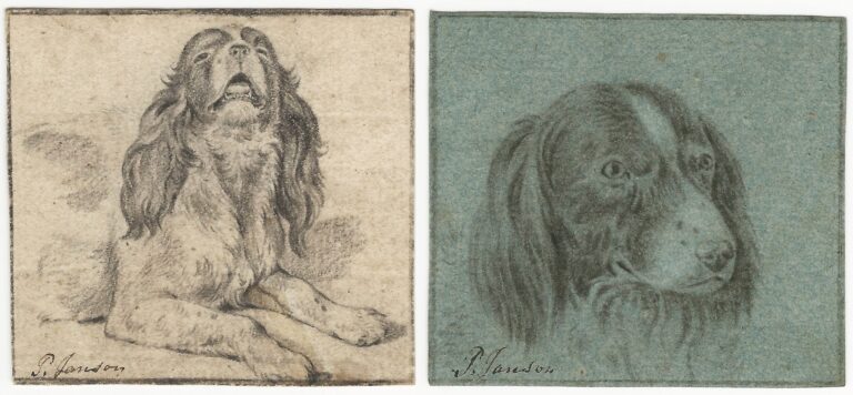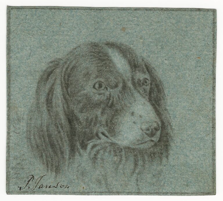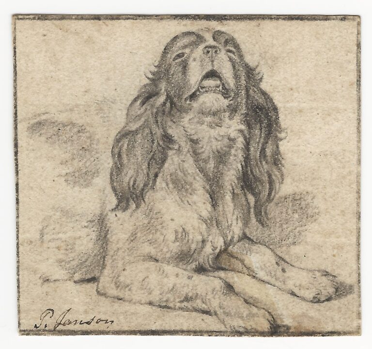 7. Anonymous sale, Amsterdam (Van der Schley … Pruyssenaar), 22 March 1802, Album P, no. 7, ‘Twee stuks, een Rustend en een staand Hondje; uitvoerig op parkament met Potlood geteekend, door P. Janson’ (sold to ‘Pruissenaar’ for fl. 7).