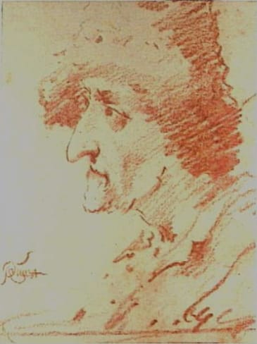 Head and Shoulders Study of a Man in Profile, wearing a tall hat
