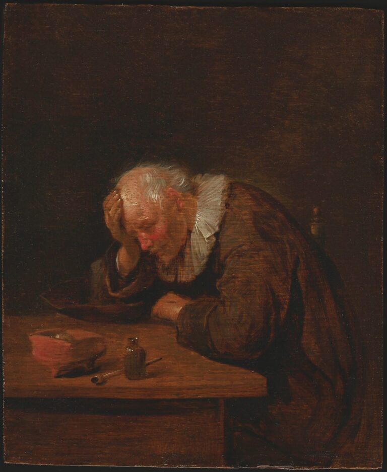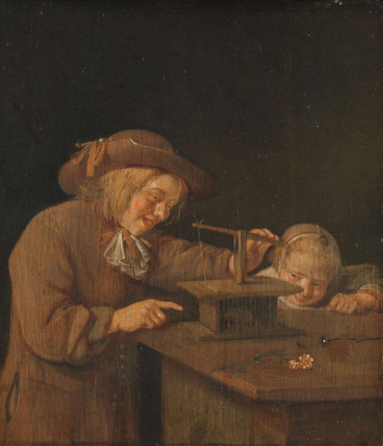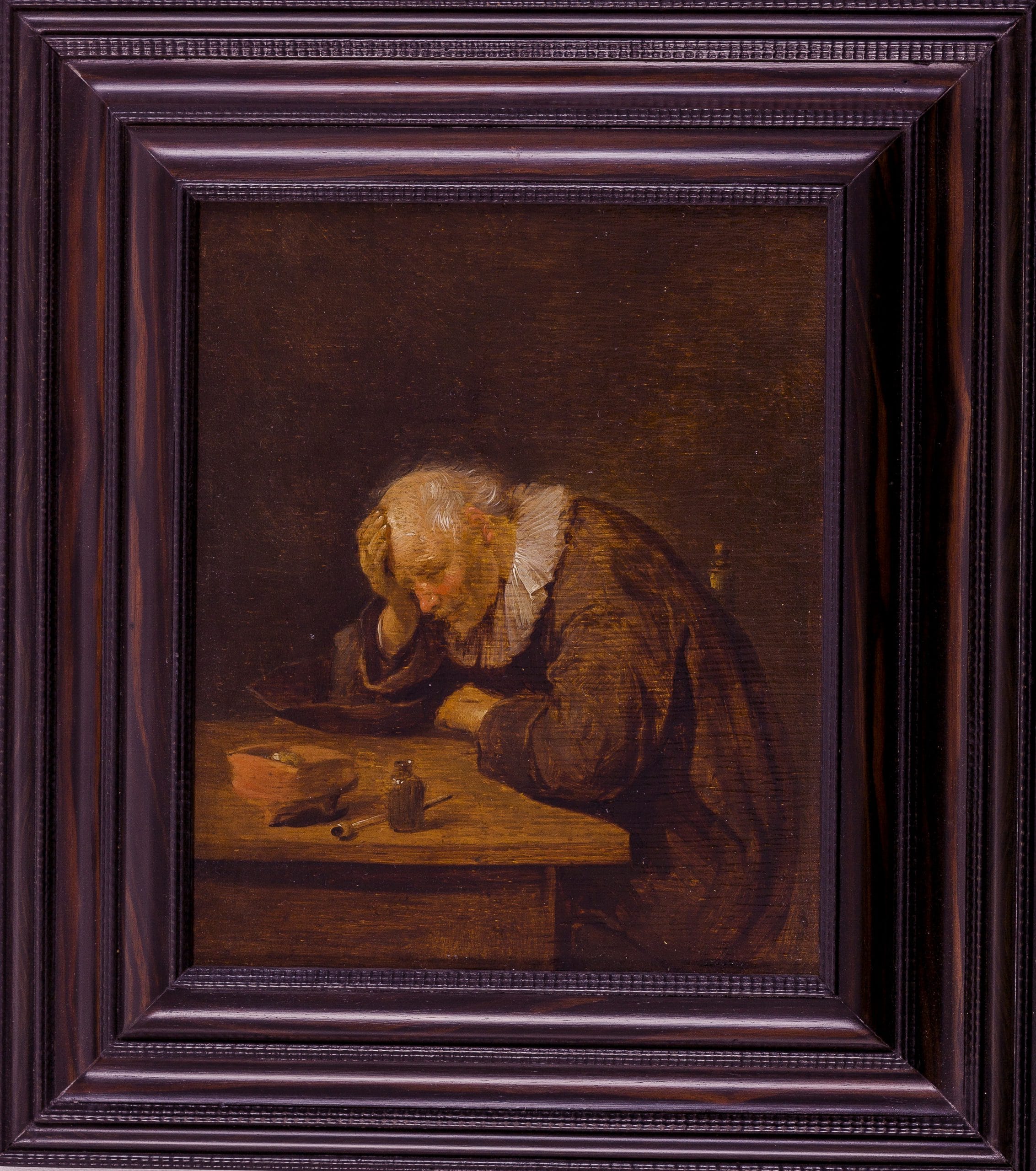 Many of Brekelenkam’s paintings include several figures – works with single figures such as the present are much less common. Because of their concentration of one figure, they are more personal and intimate than his other works, which is particularly the case in this painting. Brekelenkam’s works can be found in many of the world’s leading museums, including the National Gallery and Dulwich Picture Gallery in London, the Kunstmuseum in Basel and the Pushkin Museum in Moscow. Our work can for instance be compared with Brekelenkam’s Mouse Trap in the Rijksmuseum in Amsterdam, which is dated 1660 (last fig.).2 Both paintings share the same intimate approach and the brown tonality is equally comparable. Brekelenkam’s loose handling of the brush can be beautifully observed in this excellently preserved and charming painting.
