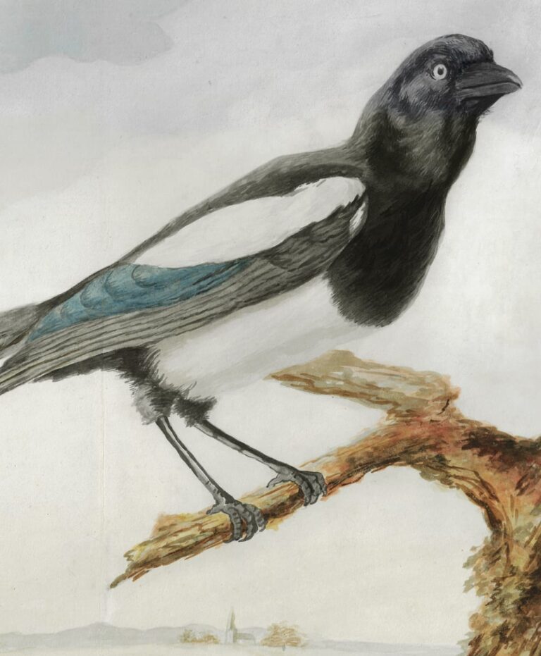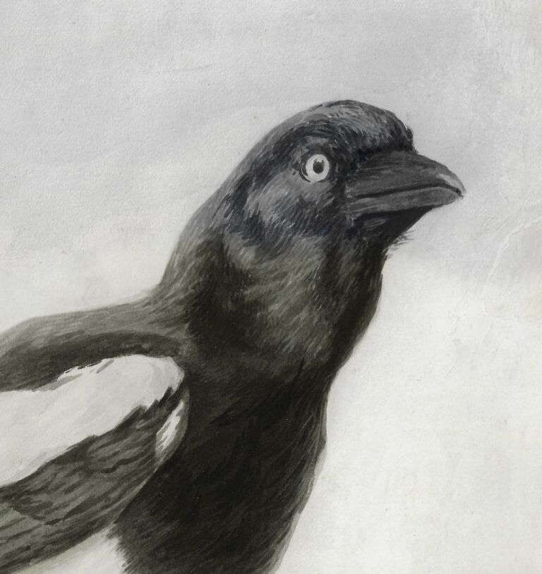 Until recently, the artistic pursuits of Doctor Van Cooth were limited to a few poetic verses, extolling the virtues of some of his female acquaintances, including Maria Magdalena Zum Kley and Dorothea Ludovica de Raet.2 The present recently discovered watercolour has highlighted another of his interests, drawing and painting, perhaps not unlikely for a medical doctor. The sheet with its powerful rendition of an alert European magpie is strongly reminiscent of drawings by the Dordrecht artist Aert Schouman (1710–1792), a near-contemporary of Stanislaus. Like many artists during the period, Schouman provided drawing lessens to interested amateurs from prosperous families. Some of these teaching sessions are recorded in a number of notebooks kept by Schouman, which sadly do not span the whole of his artistic career. From these, we know the artist taught three girls from the Dordrecht notable Pompe van Meerdervoort family, and other members of the De Witt and Van Slingelandt dynasties.3 For most if not all of these pupils, no works are known today. Schouman also taught pupils during his sojourn in The Hague, including Wouter Dam (1726–1786), who paid the artist four guilders per month in 1739 for drawing lessons.4