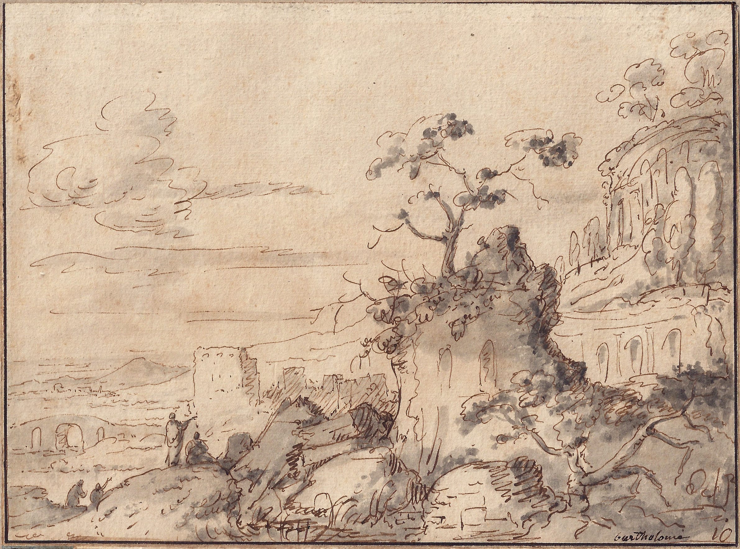 The drawing was formerly attributed to Bartholomeus Breenbergh (1598-1657).